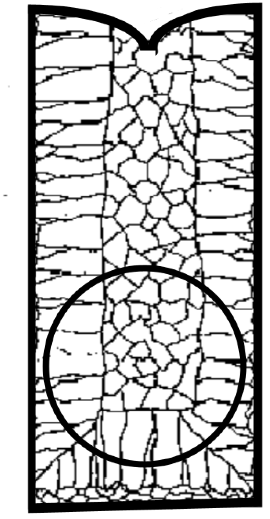 Representation of the possible internal microstructure of the ingot and the region from which the sphere was machined. Source: The authors.