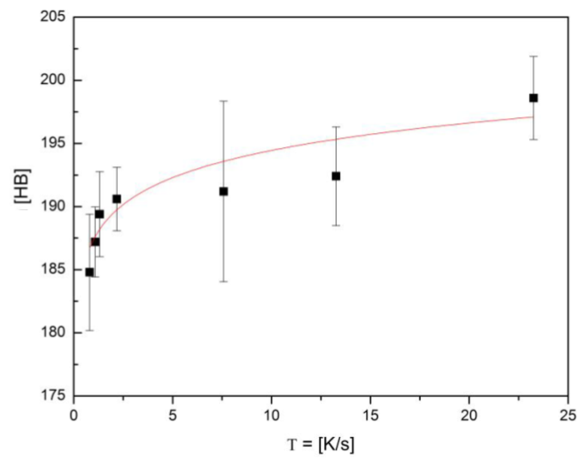 Graphic of the Brinell hardness of CuAl as a function of the cooling speed. Source: [