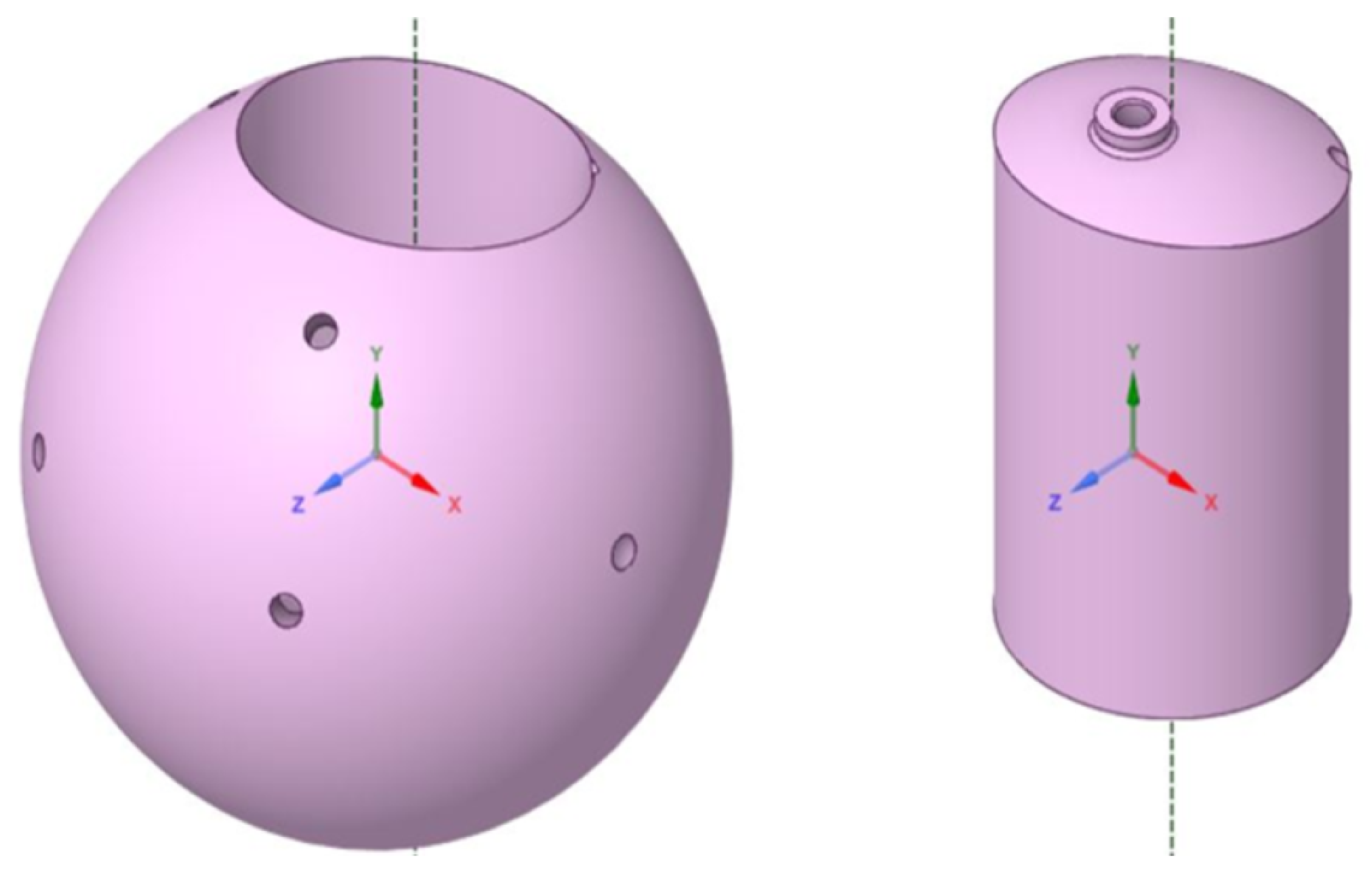 Drawing of the simulated antenna model, showing its two parts. The spherical, external part was considered harder than the internal, cylindrical part by 20%. Source: The authors.