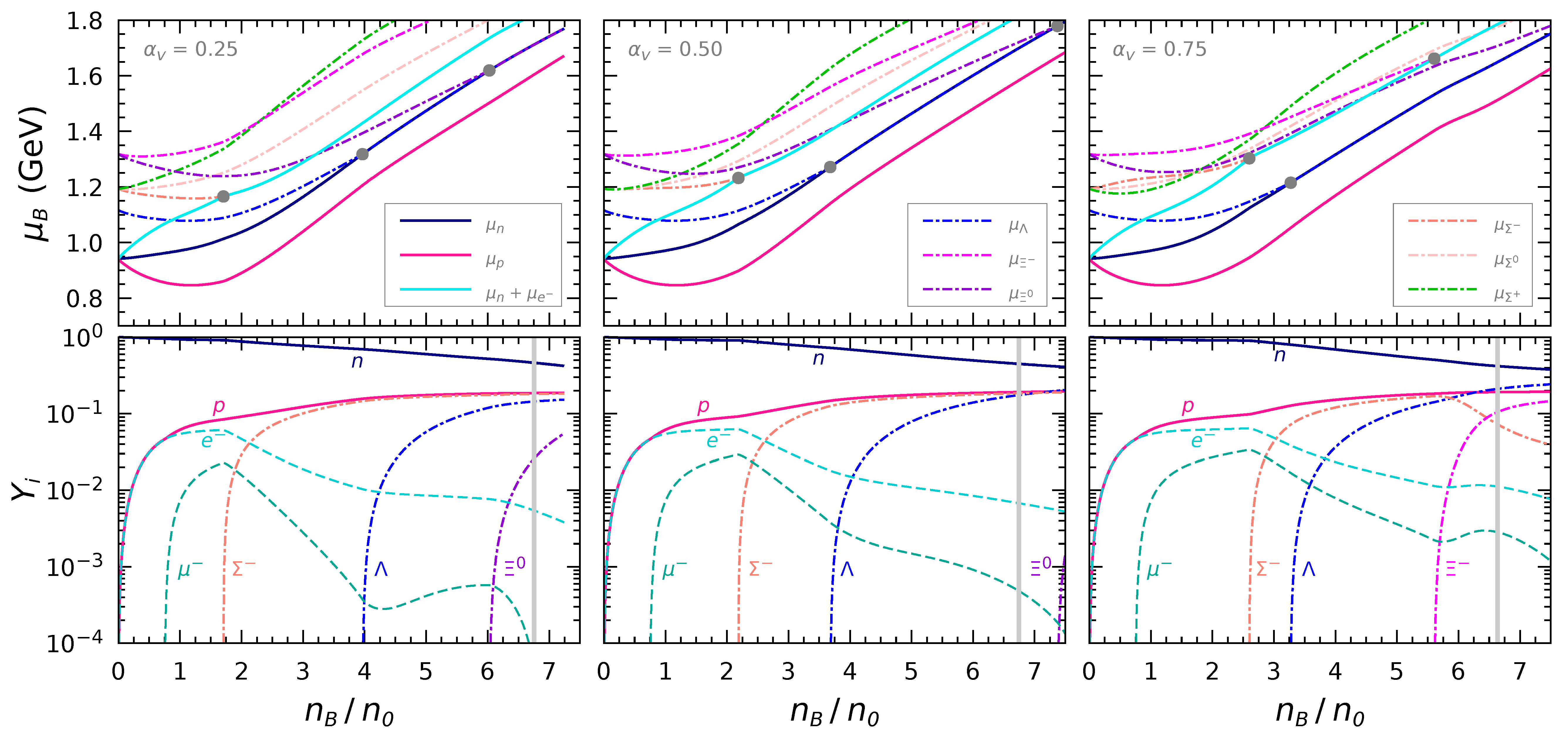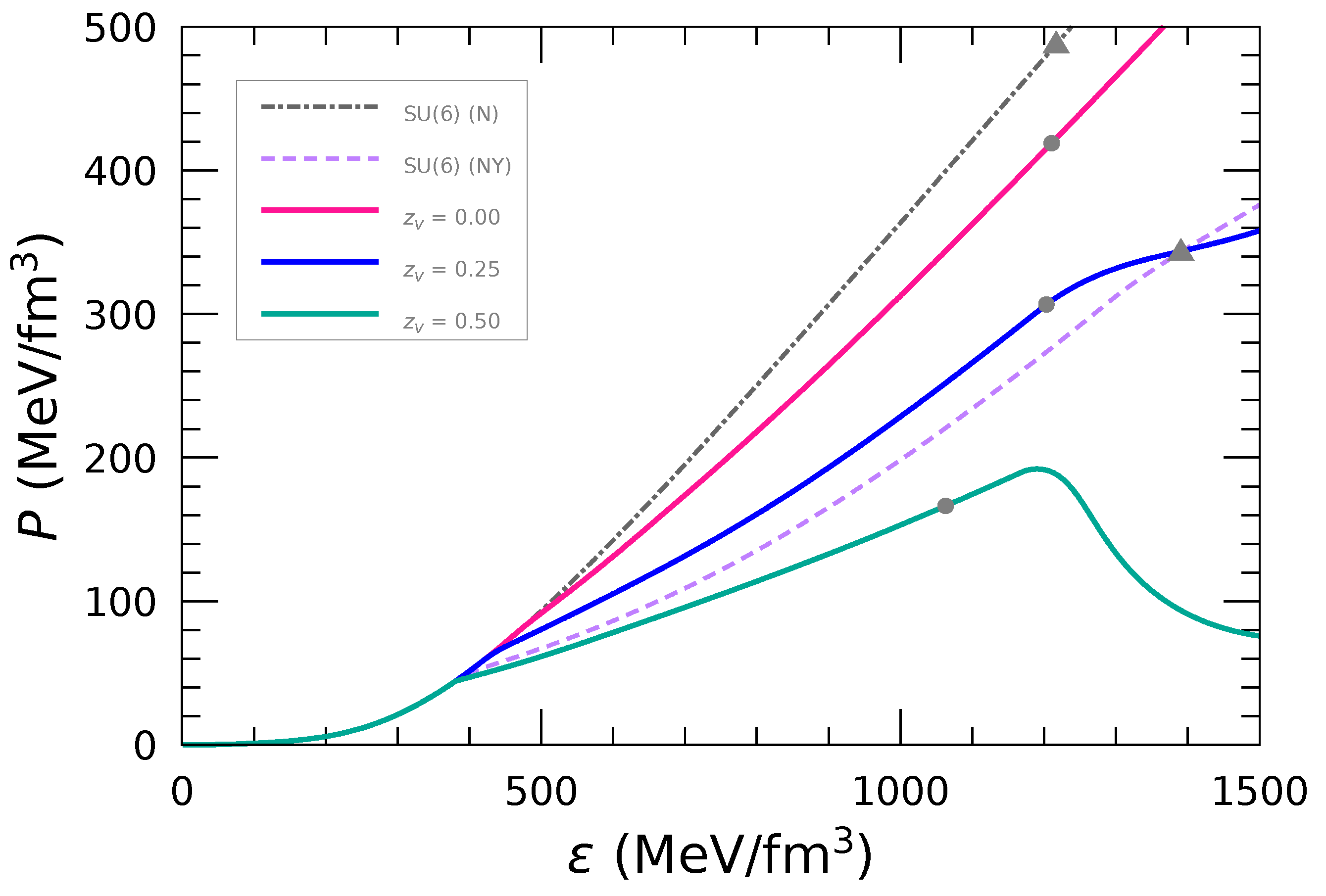 - Katayama, T.; Miyatsu, T.; Saito, K. EoS for massive neutron stars. Astrophys. J. Suppl. 2012, 203, 22. [Google Scholar] [CrossRef]
