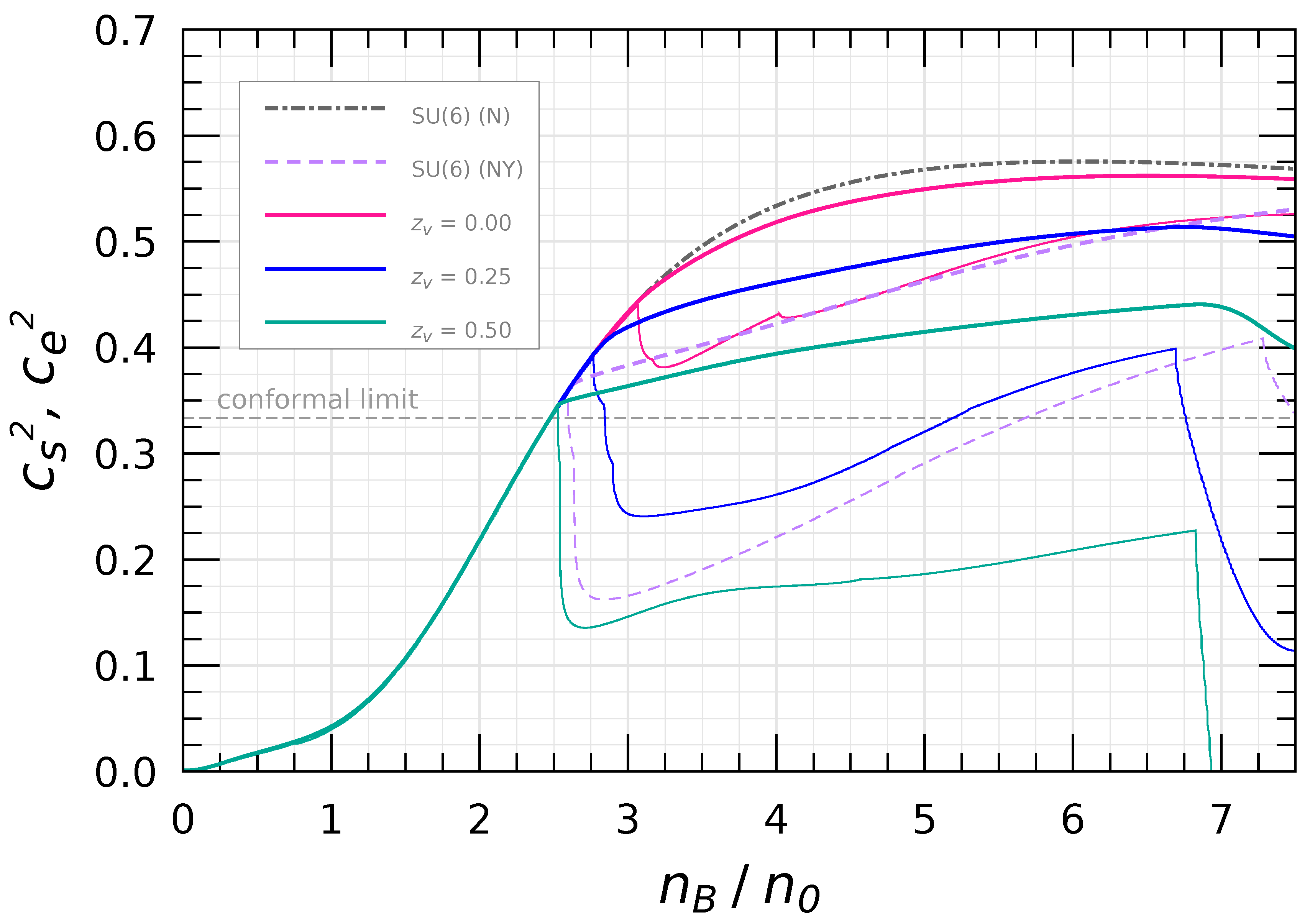 - Kojo, T. Stiffening of matter in quark–hadron continuity: A mini-review. J. Subat. Part. Cosmol. 2025, 4, 100088. [Google Scholar] [CrossRef]