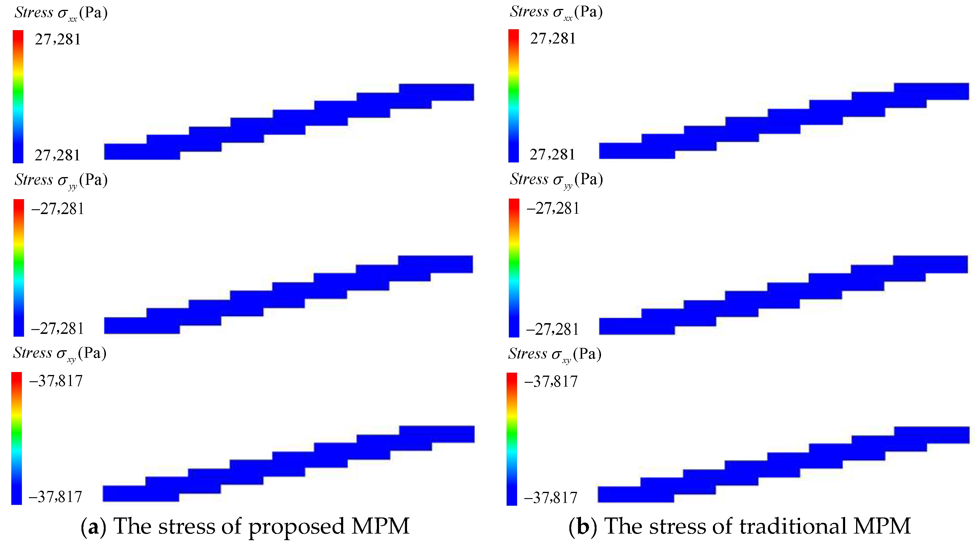 - Zhang, D.Z.; Ma, X.; Giguere, P.T. Material Point Method Enhanced by Modified Gradient of Shape Function. J. Comput. Phys. 2011, 230, 6379–6398. [Google Scholar] [CrossRef]