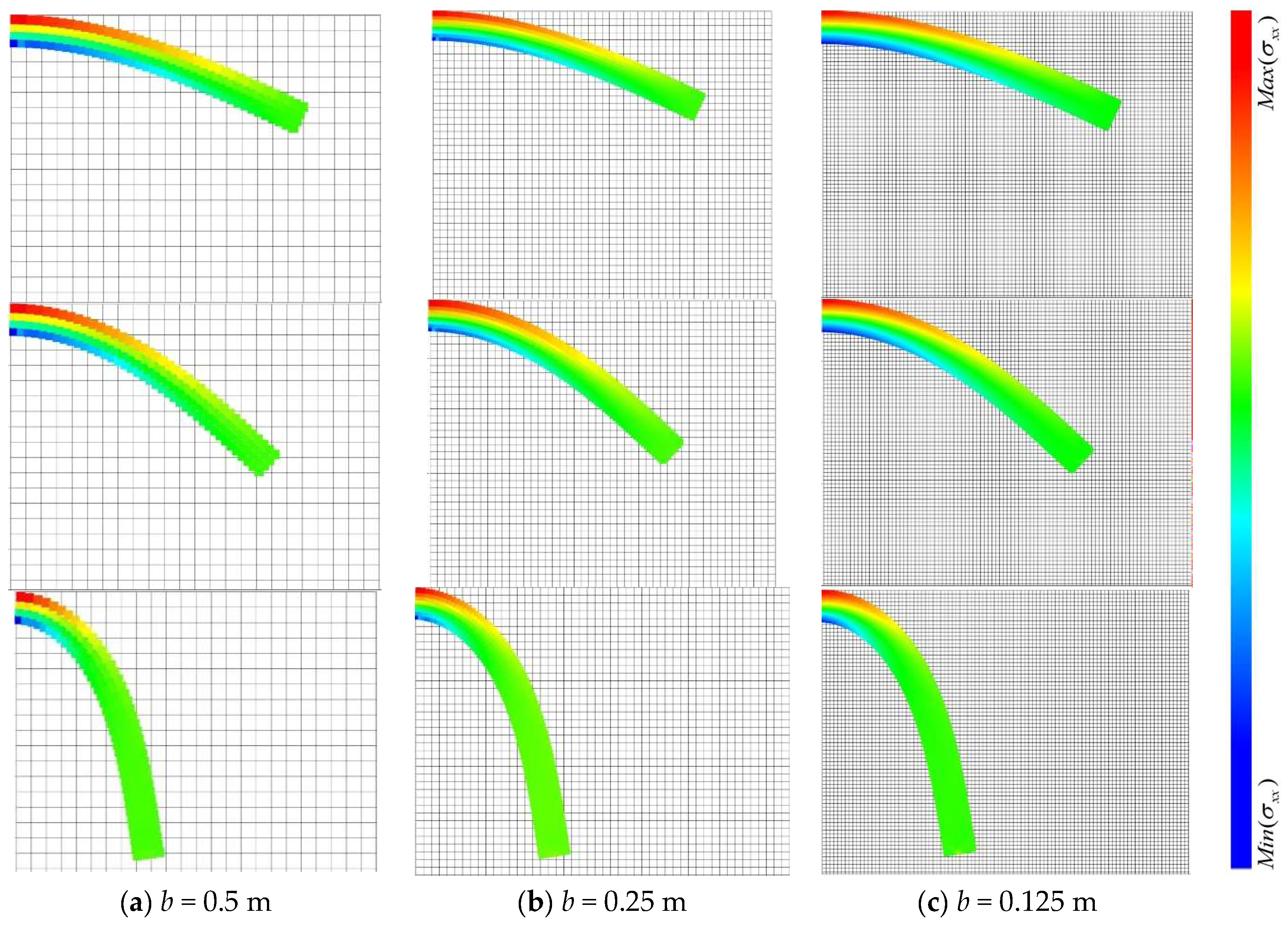 - Steffen, M.; Kirby, R.M.; Berzins, M. Analysis and Reduction of Quadrature Errors in the Material Point Method (MPM). Int. J. Numer. Methods Eng. 2008, 76, 922–948. [Google Scholar] [CrossRef]