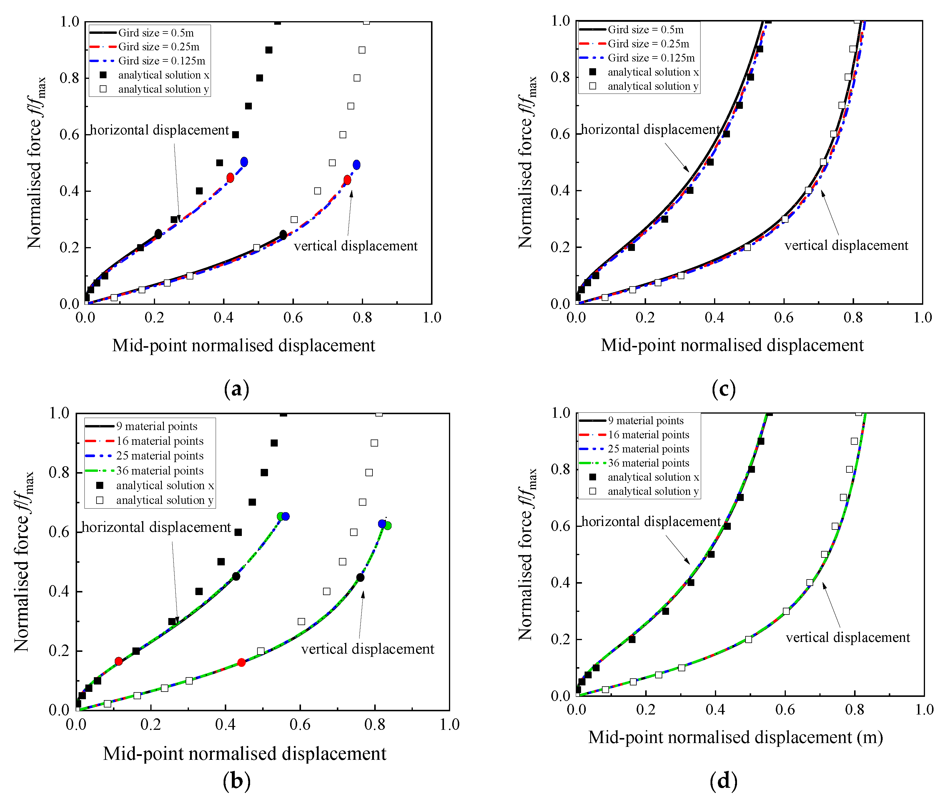 - Charlton, T.J.; Coombs, W.M.; Augarde, C.E. iGIMP: An Implicit Generalised Interpolation Material Point Method for Large Deformations. Comput. Struct. 2017, 190, 108–125. [Google Scholar] [CrossRef]