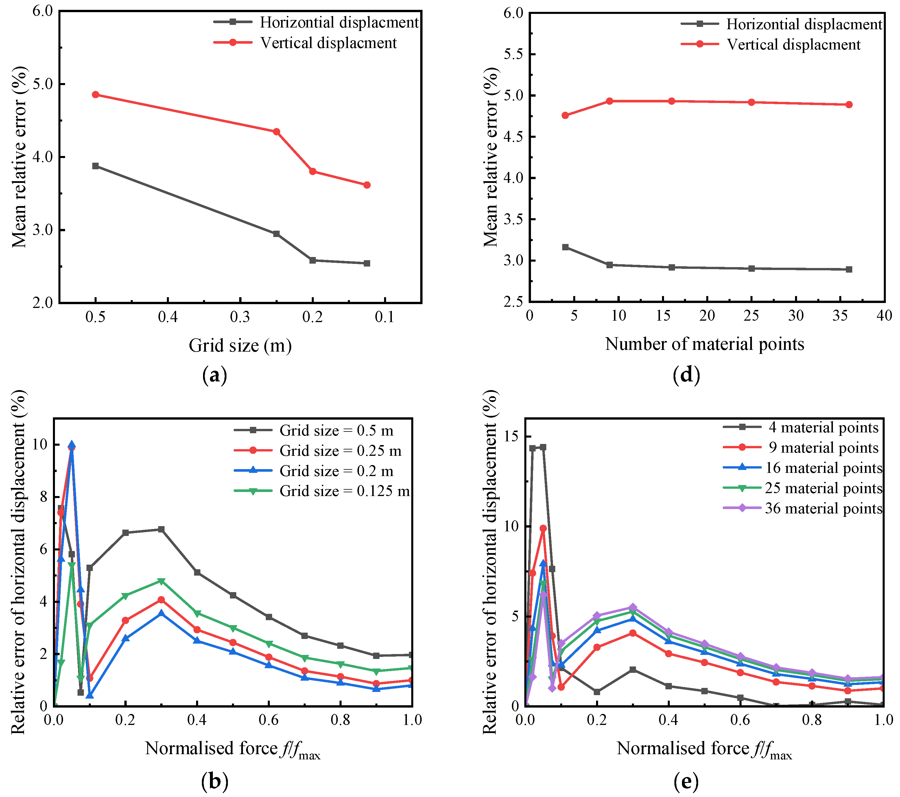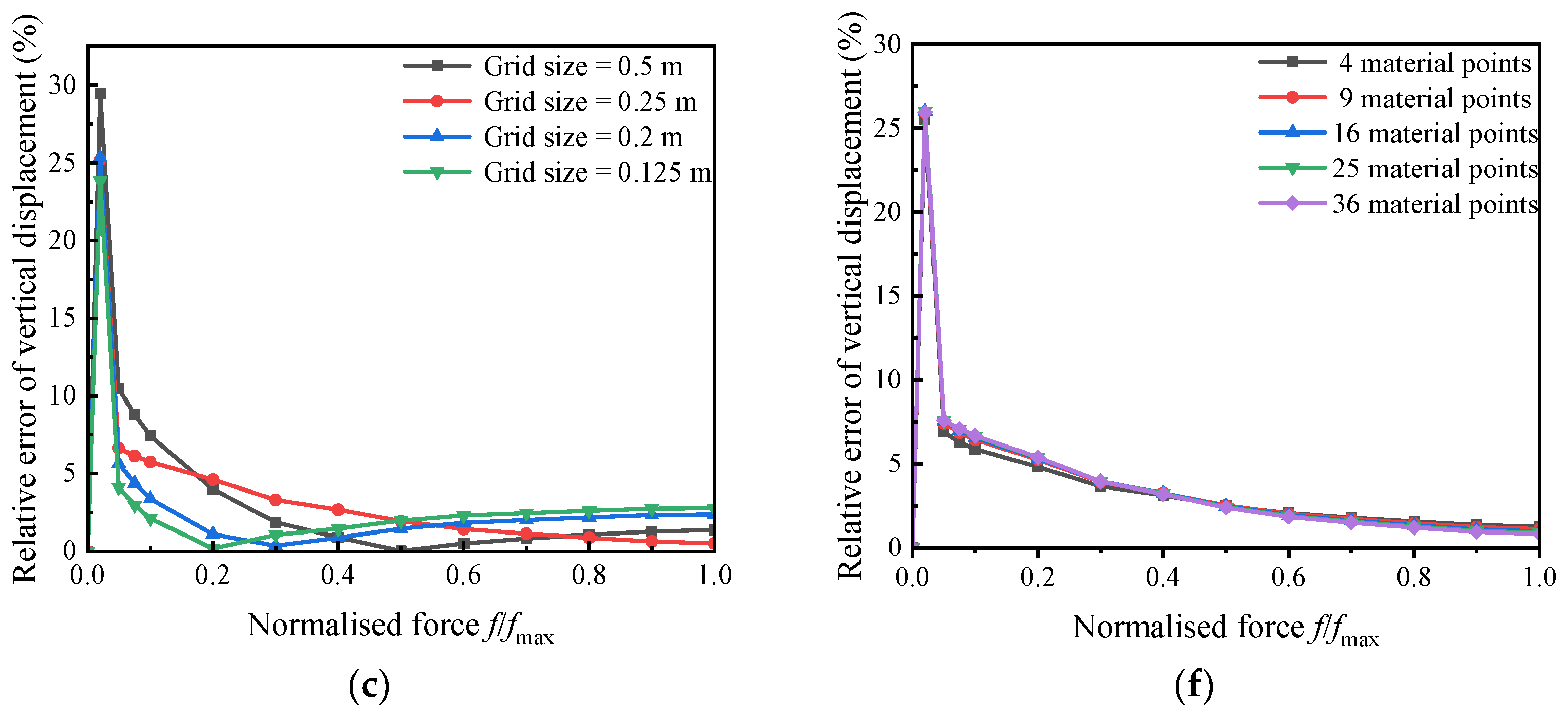 - Sołowski, W.T.; Sloan, S.W. Evaluation of Material Point Method for Use in Geotechnics. Int. J. Numer. Anal. Methods Geomech. 2015, 39, 685–701. [Google Scholar] [CrossRef]