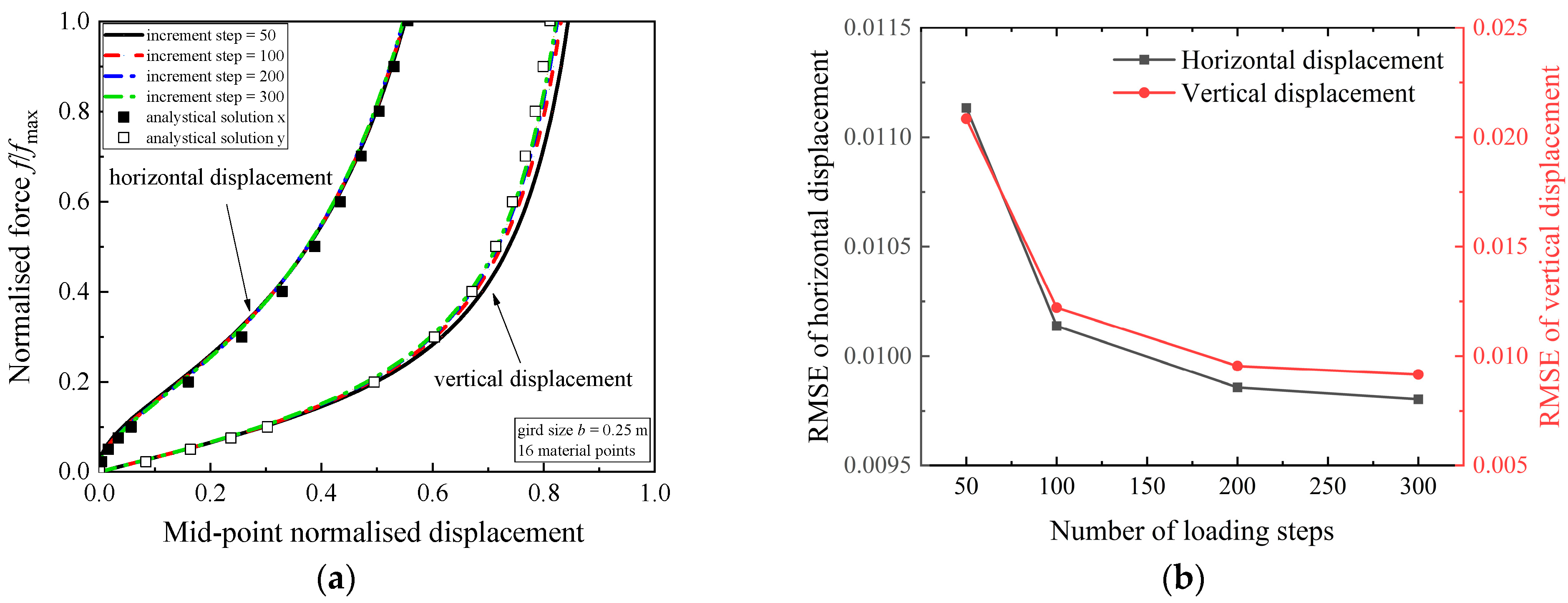 - Wang, B.; Vardon, P.J.; Hicks, M.A.; Chen, Z. Development of an Implicit Material Point Method for Geotechnical Applications. Comput. Geotech. 2016, 71, 159–167. [Google Scholar] [CrossRef]