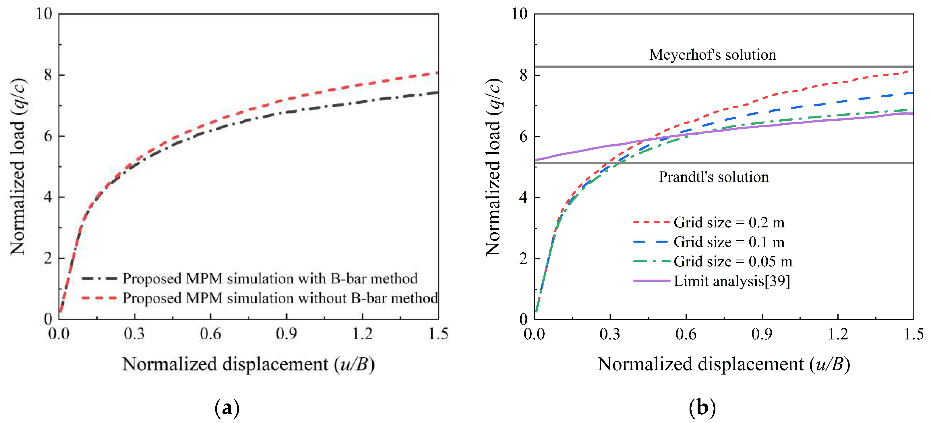 - Xie, M.; Navas, P.; López-Querol, S. An Implicit Locking-free B-spline Material Point Method for Large Strain Geotechnical Modelling. Int. J. Numer. Anal. Methods Geomech. 2023, 47, 2741–2761. [Google Scholar] [CrossRef]