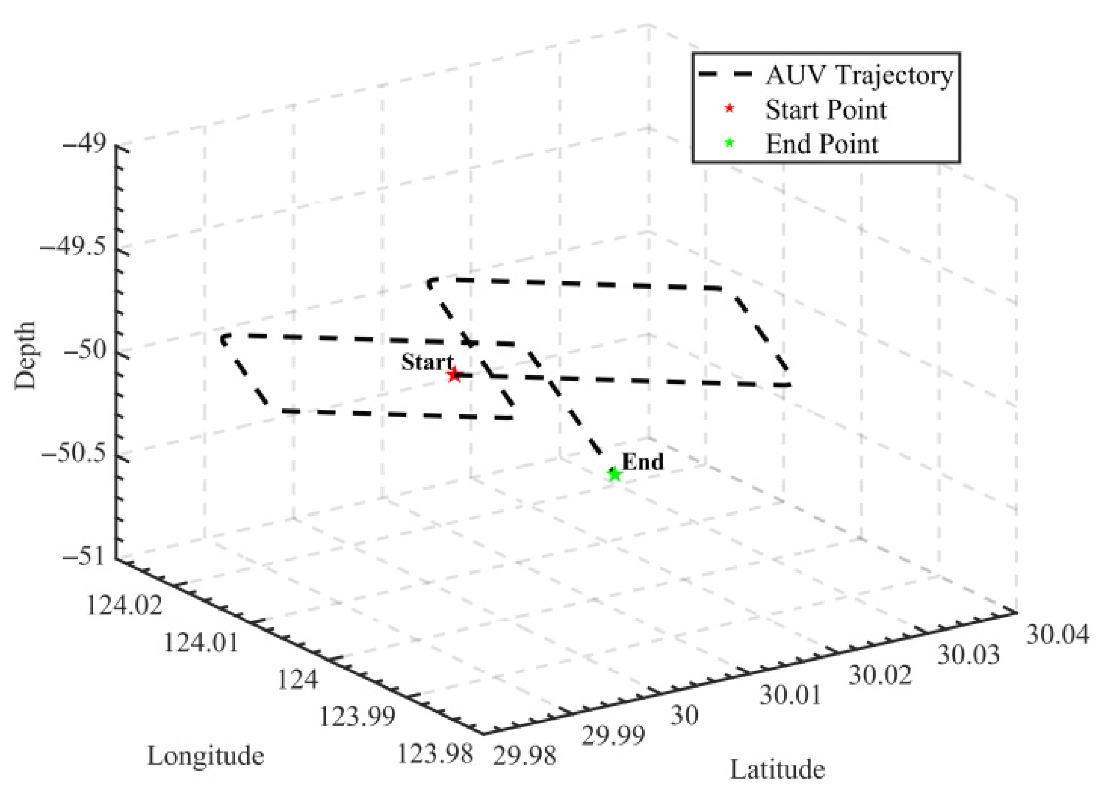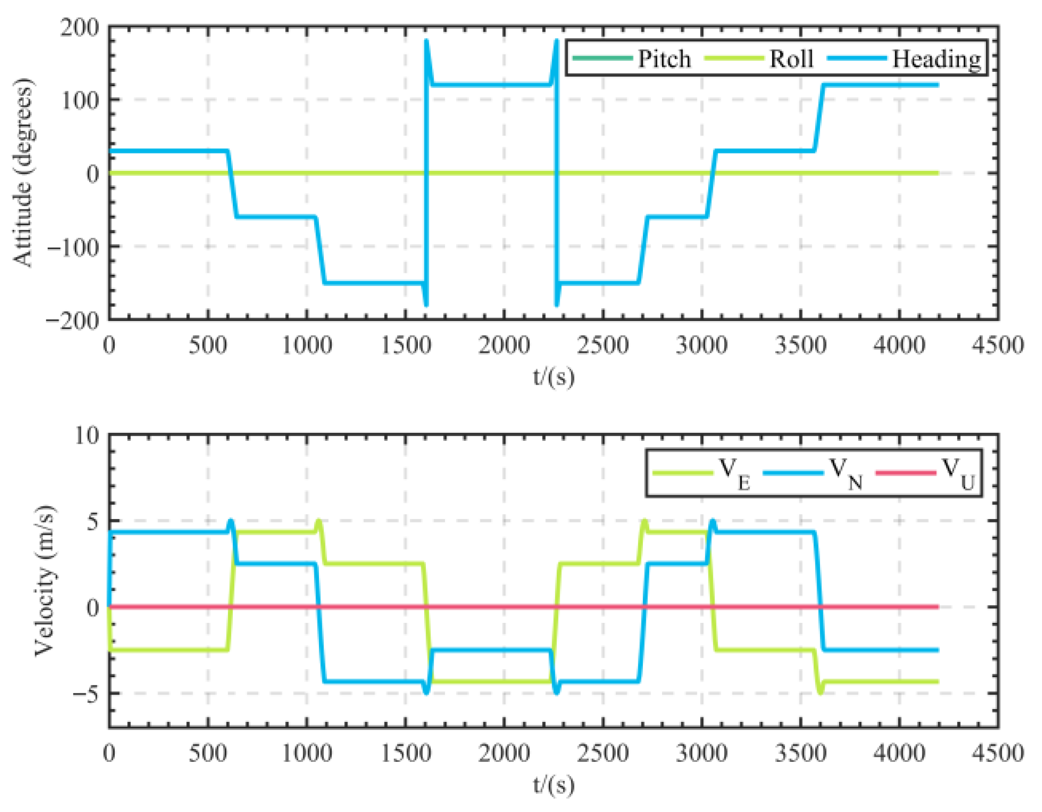 To validate the usability and effectiveness of the algorithm, it is essential to generate ideal angular velocity and acceleration information based on the trajectory using the SINS guidance inversion algorithm, which utilizes data from SINS and DVL. According to the inertial sensor specifications and the errors of DVL in