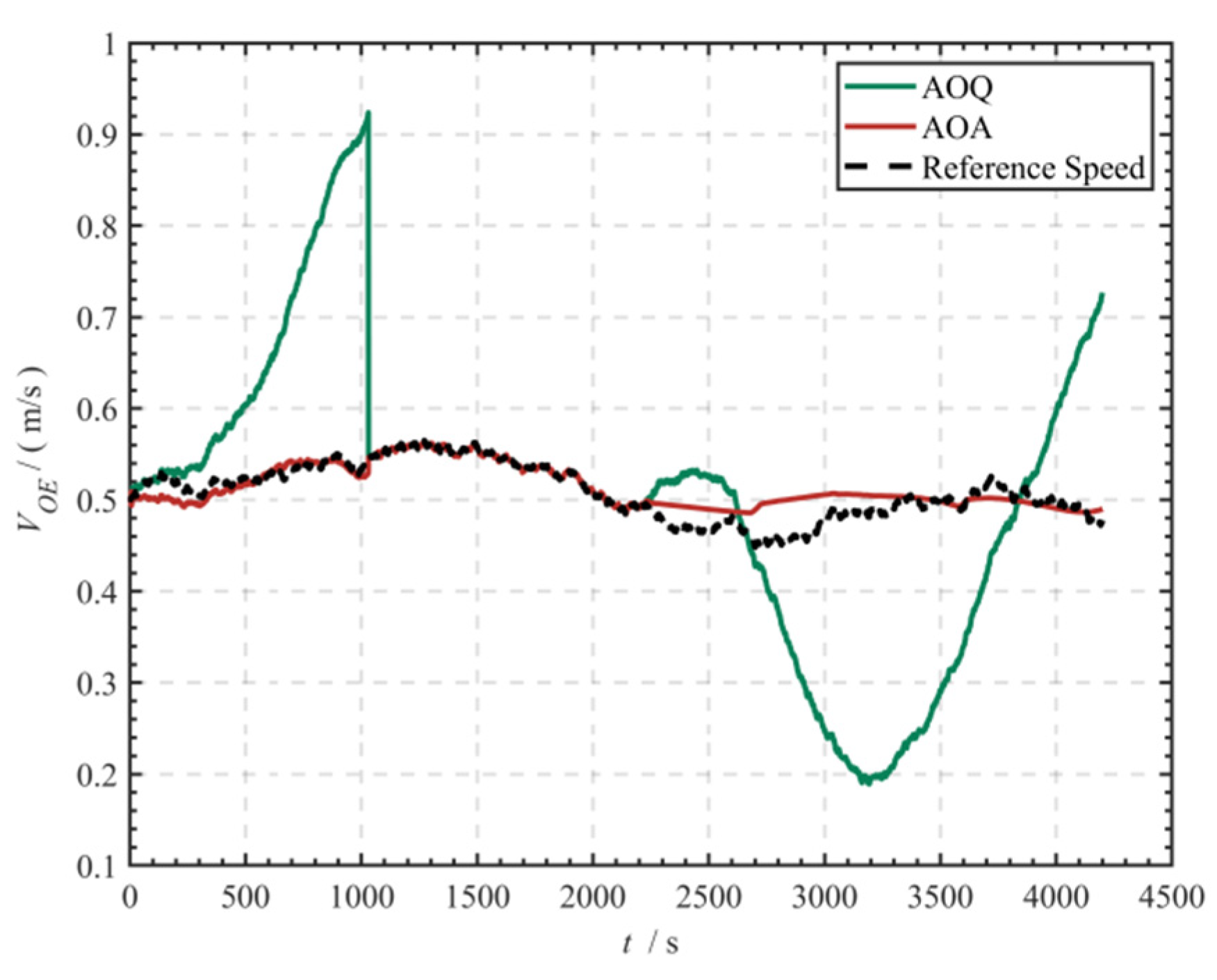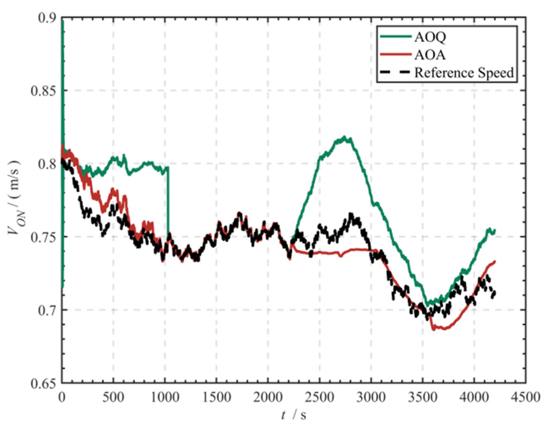 To verify the performance of the proposed AOA based on time-varying current velocity estimation, the AOQ algorithm referenced in [