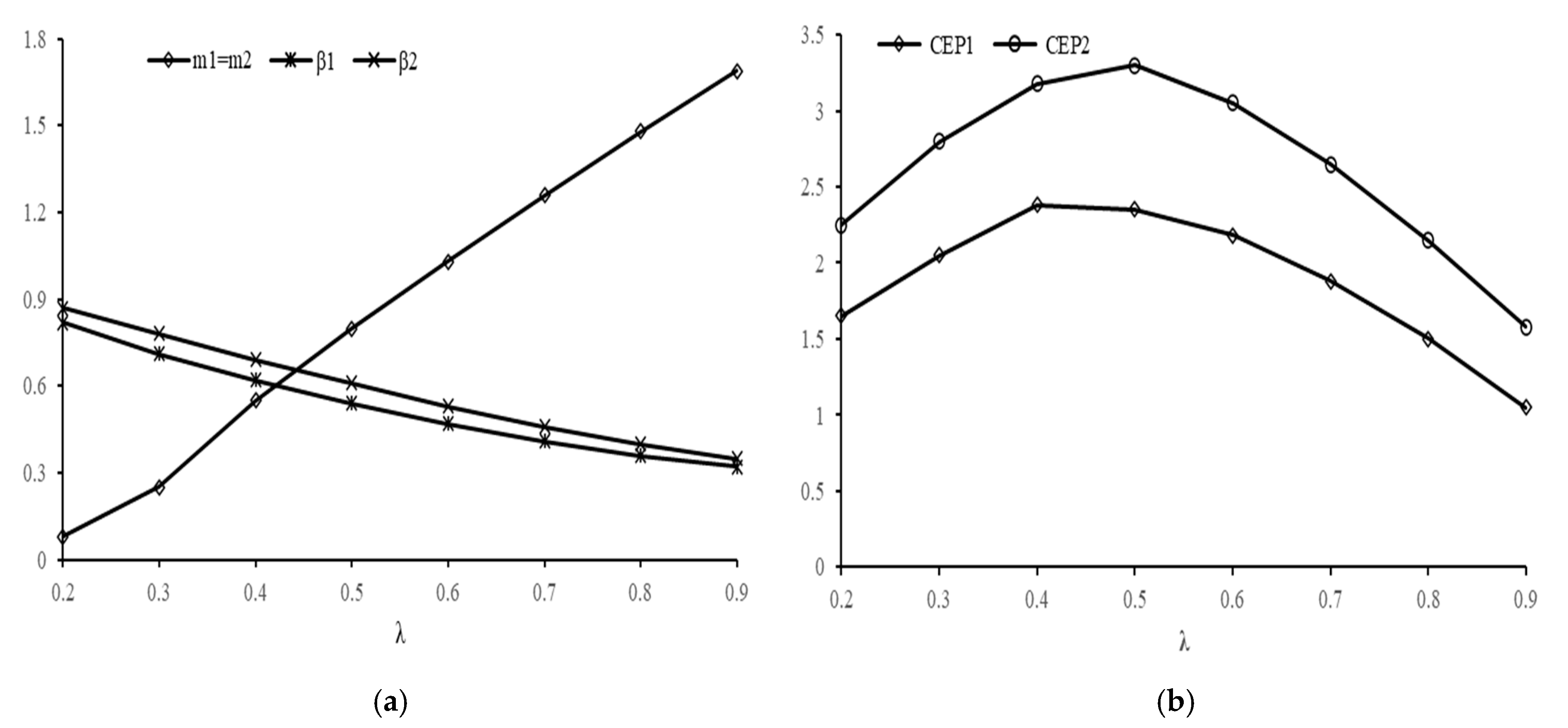 5.2. Impact of the Value Preference Parameter on the Embedded Enterprise’s Effort Levels