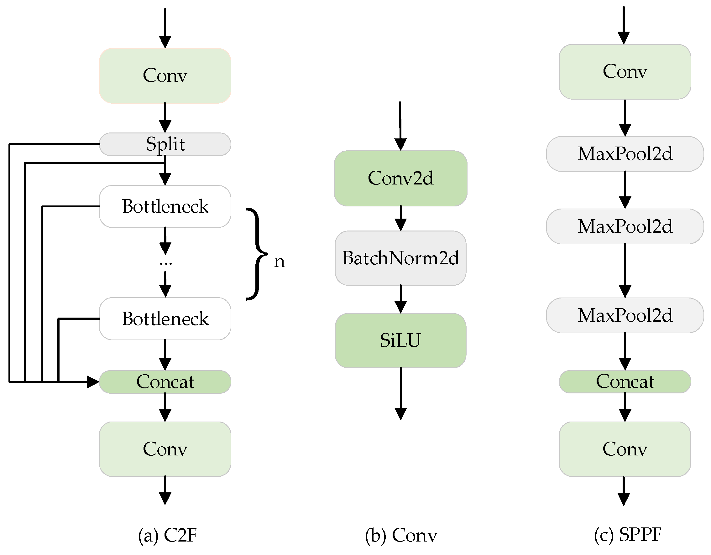 33] in enhancing multi-scale representation, but differs in implementation. While CSPNet reduces gradient redundancy via cross-stage partial connections and GELAN improves information flow through dual gradient paths, we replace the C2F module with parallel convolutions of varying dilation rates. This design, conceptually similar to DeepLab’s ASPP [