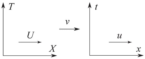 The invariance of (26) under the Lorentz transformations (3) and (4) may be established either by using Einstein’s addition of velocities law (see [] or [] (p. 49)) or by using the variables and and the Lorentz transformations (4) and (7)2. In terms of these new variables, Equation (26)2 becomes simply