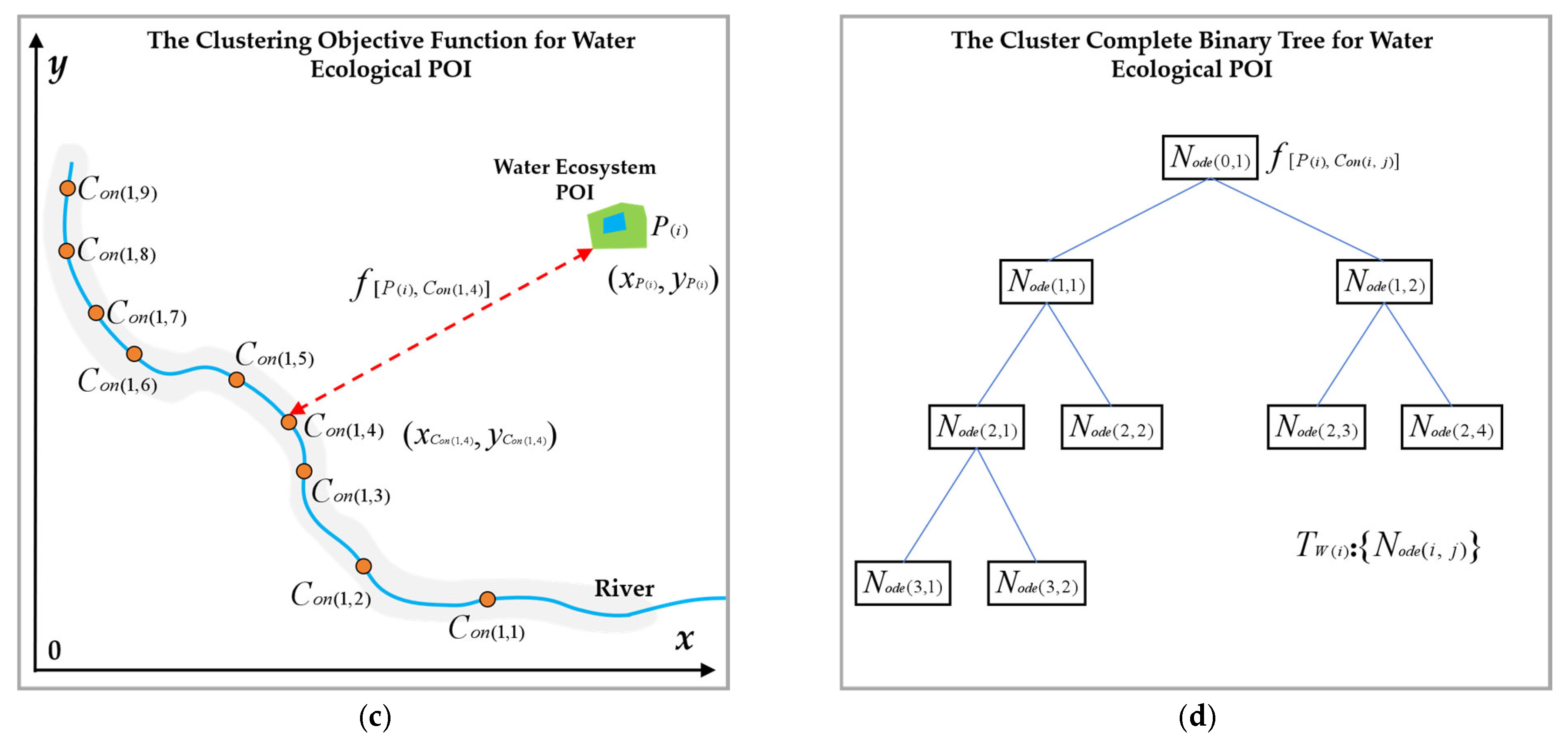Figure 3d shows the generated water ecological POI clustering complete binary tree