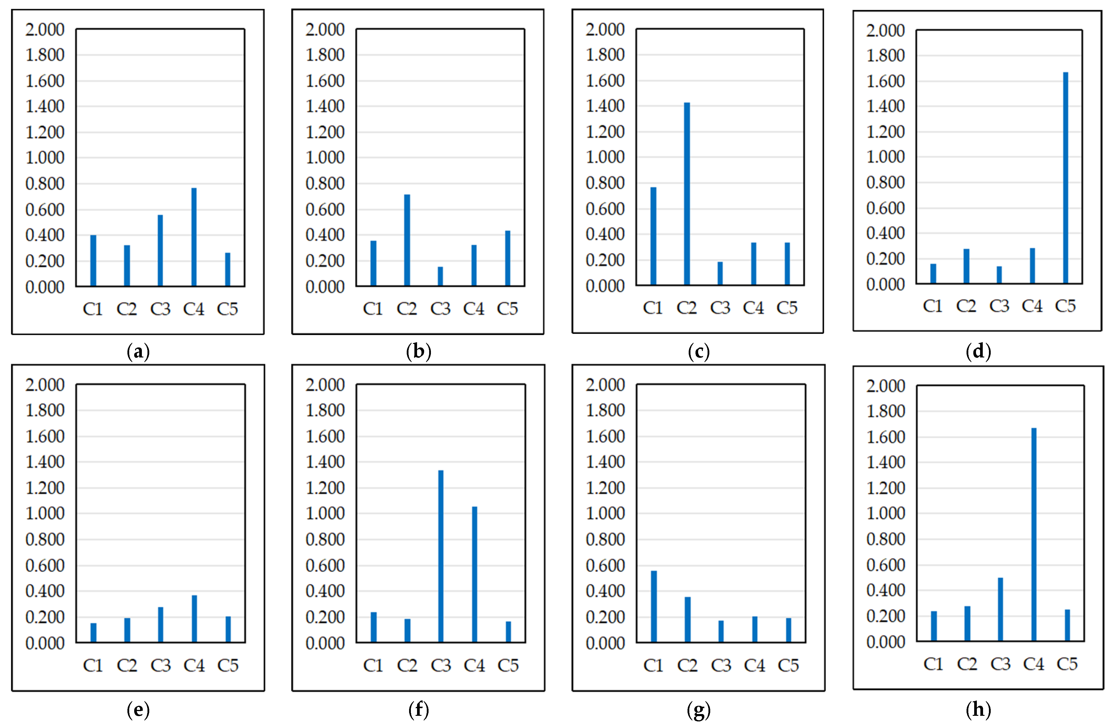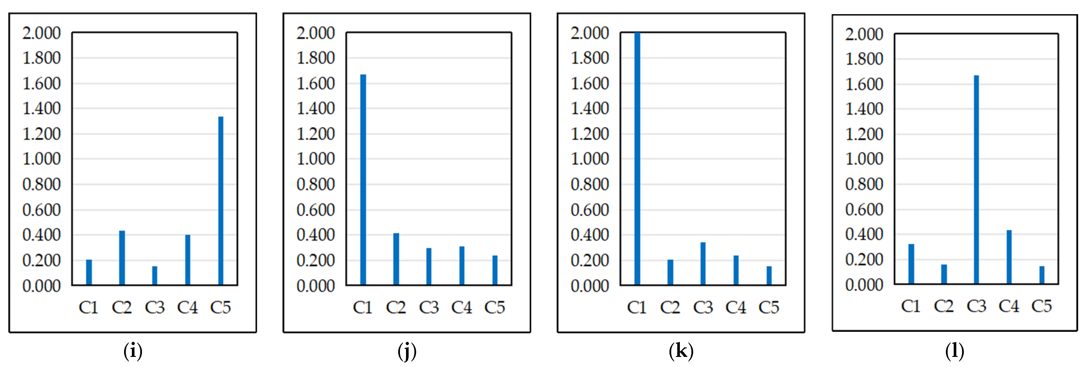 dimension matrix to store the set of control points in of the dataset . The rows represent the elements and the columns represent the No. control point . When the number of water ecological POIs form number of clusters , a dimension matrix is constructed to store each cluster POI. The rows represent clusters and the columns represent the No. POI element of the cluster, , . Formulas (1) and (2) represent the matrix , and Formula (3) is the matrix .