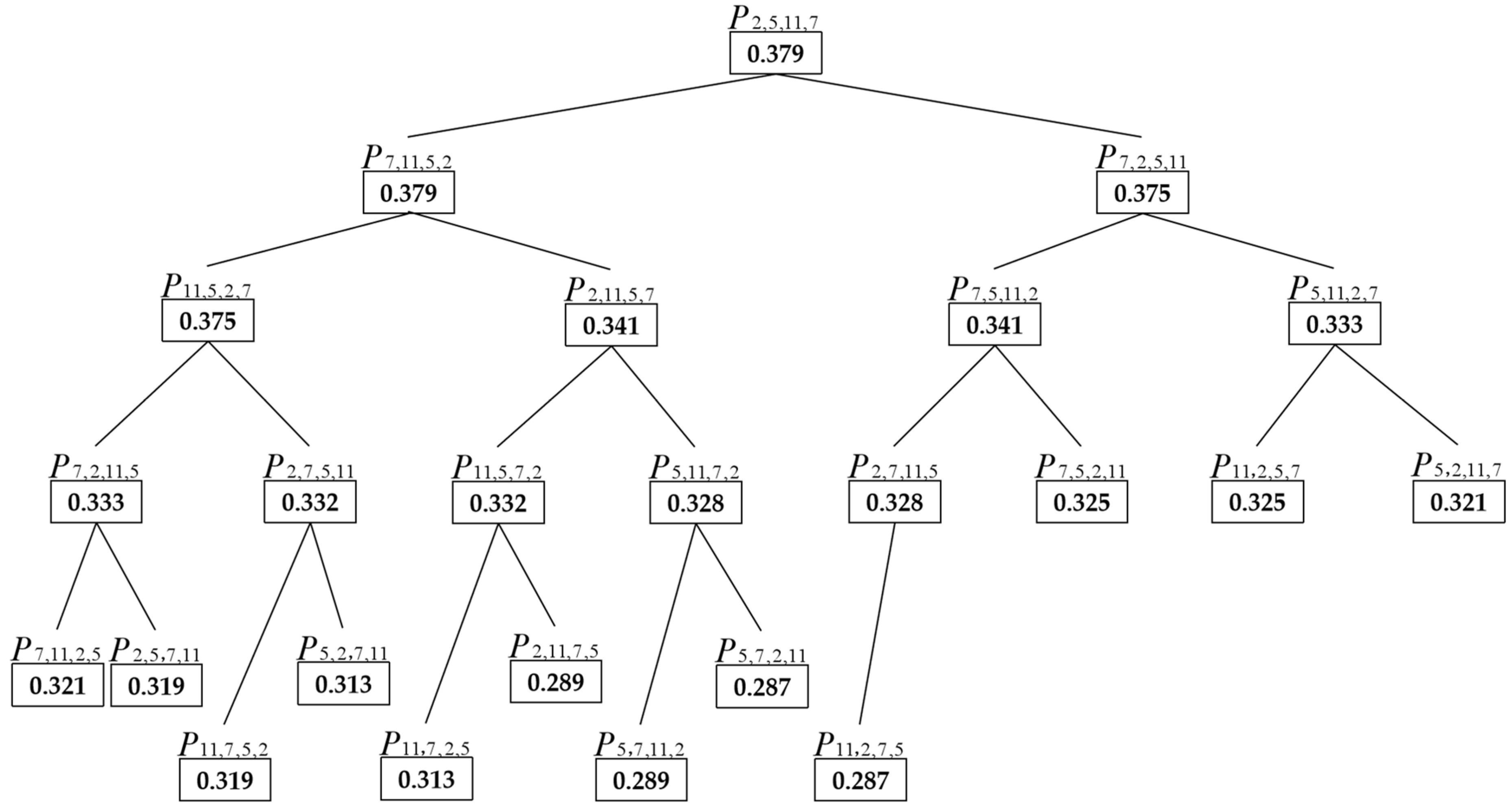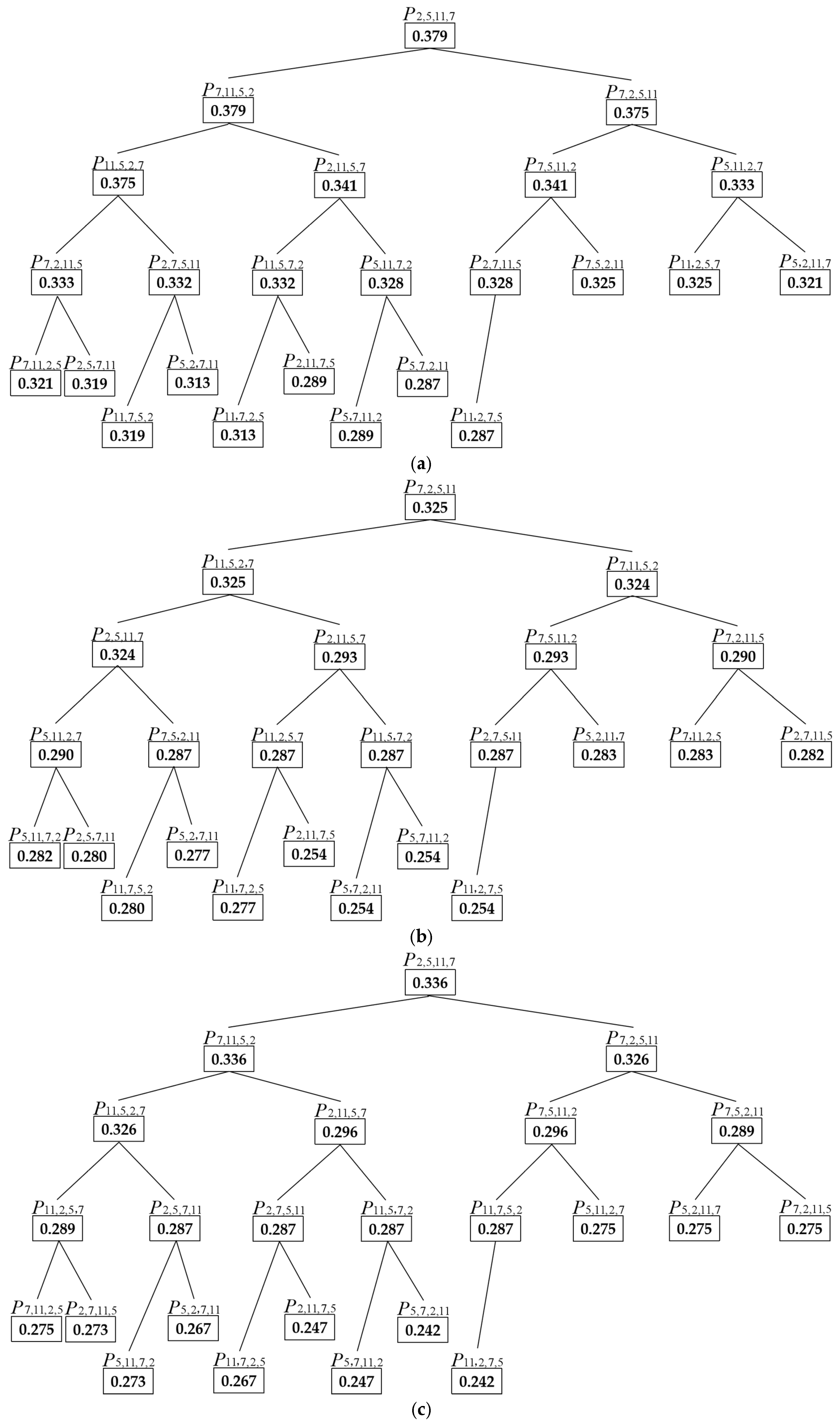 (4) According to the method in Step (3), randomly select an arbitrary element ~ from , , and determine the following:
