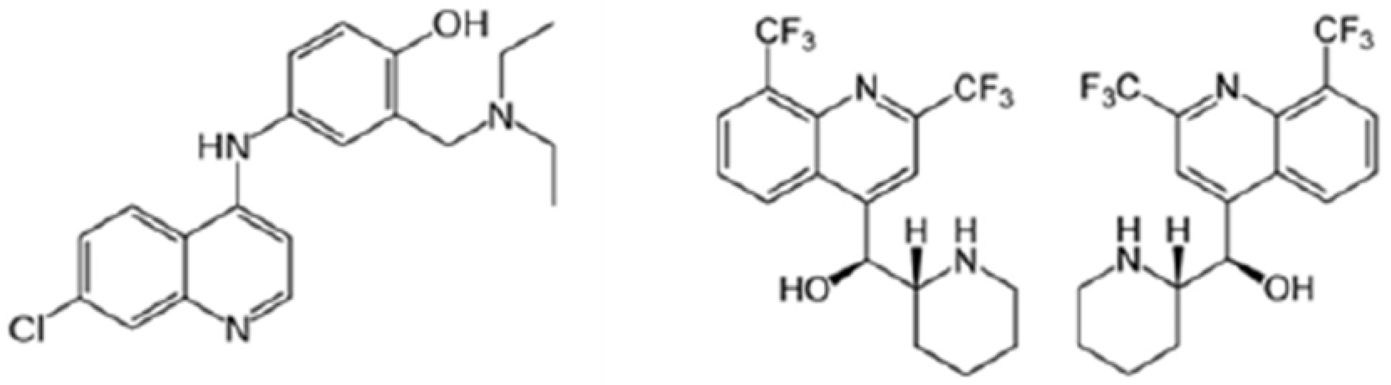 | Mefloquine (C17H16F6N2O) | 415.7 | 70.5 | 205.2 | 83 | 273.4 | 32.9 |