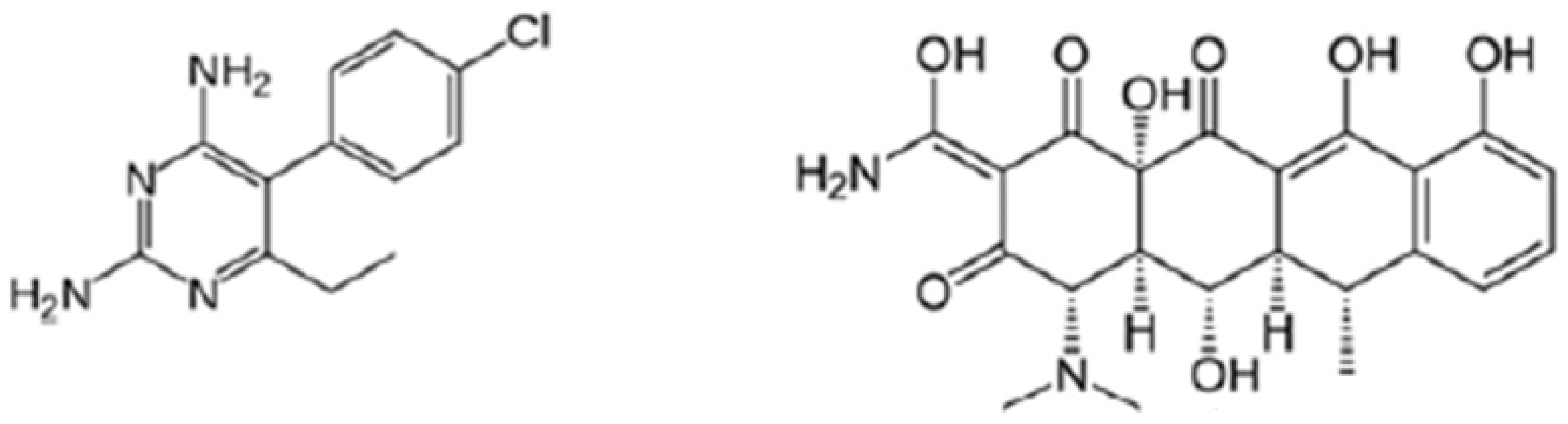 | Pyrimethamine (C12H13N5) | 20,756 | 7136 |
