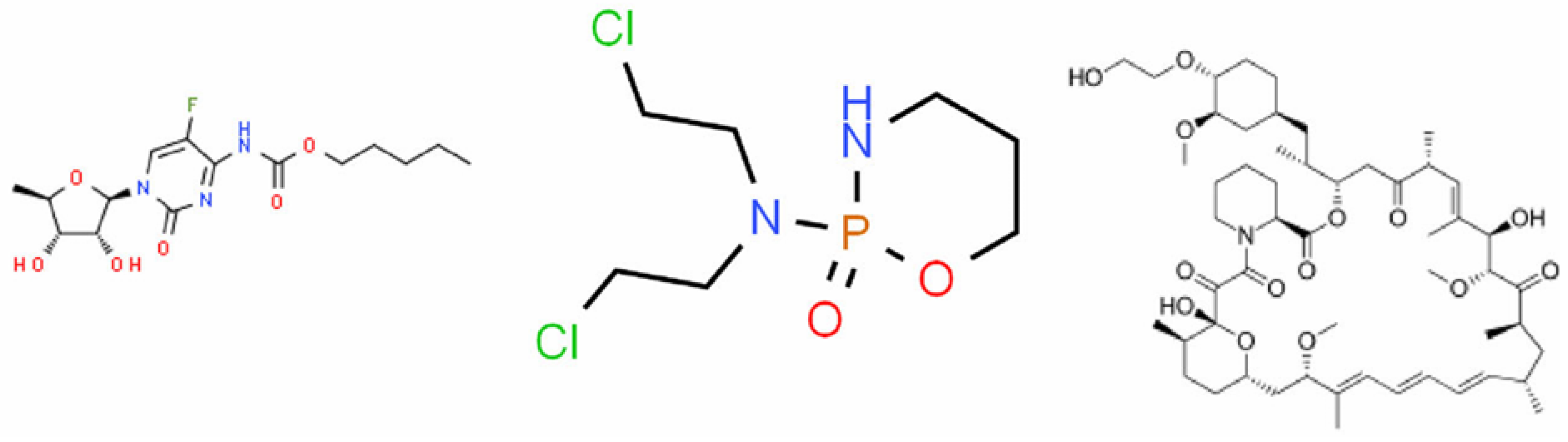 | Cyclophosphamide (C7H15Cl2N2O2P) | 6758 | 3478 |