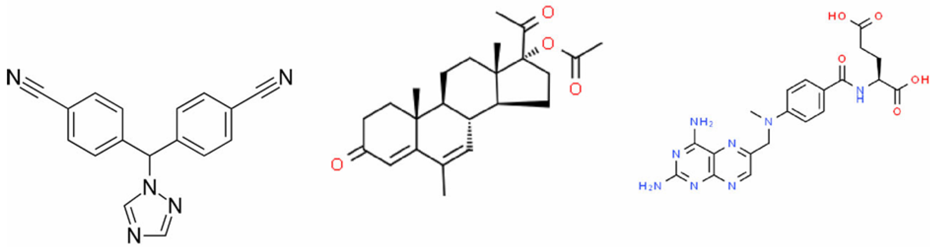 | Anastrozole (C17H19N5) | 35,632 | 15,488 |