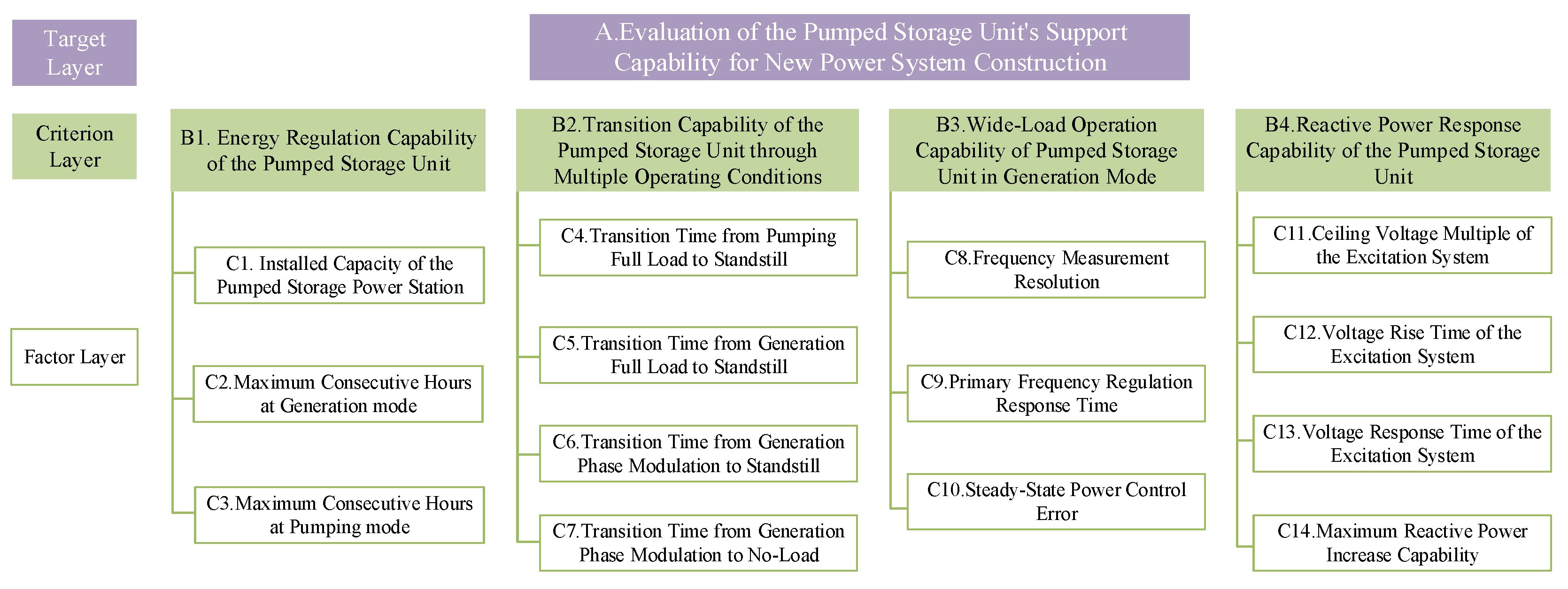 - Energy Regulation Capability refers to the ability of PSU to regulate energy storage and release within the power system. This capability ensures that the units can effectively mitigate fluctuations from renewable energy sources, achieve peak-valley energy transfer, and provide system reserves. Its quantitative evaluation includes three key indicators: rated capacity (MW), full generation/pumping duration (h).