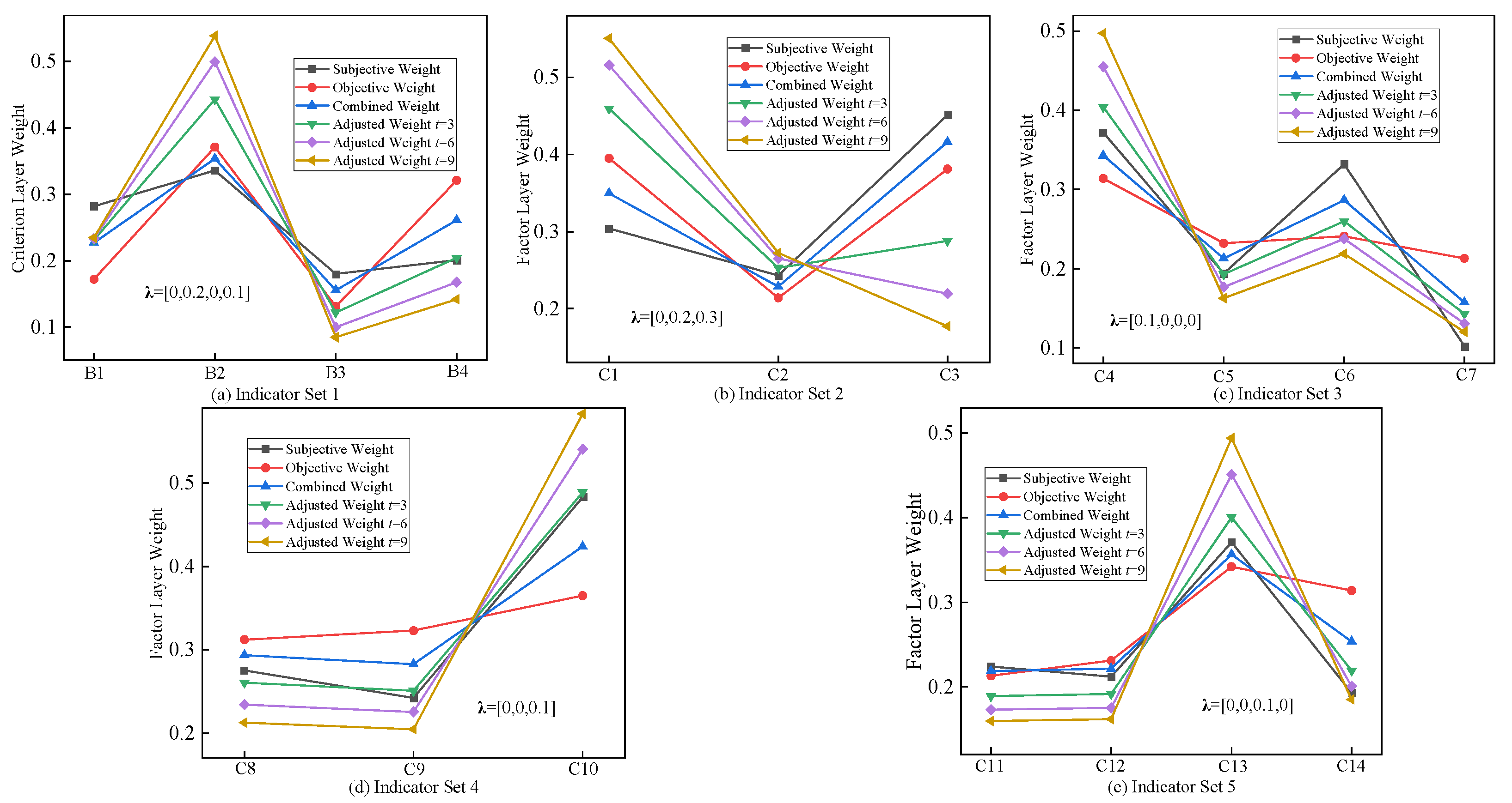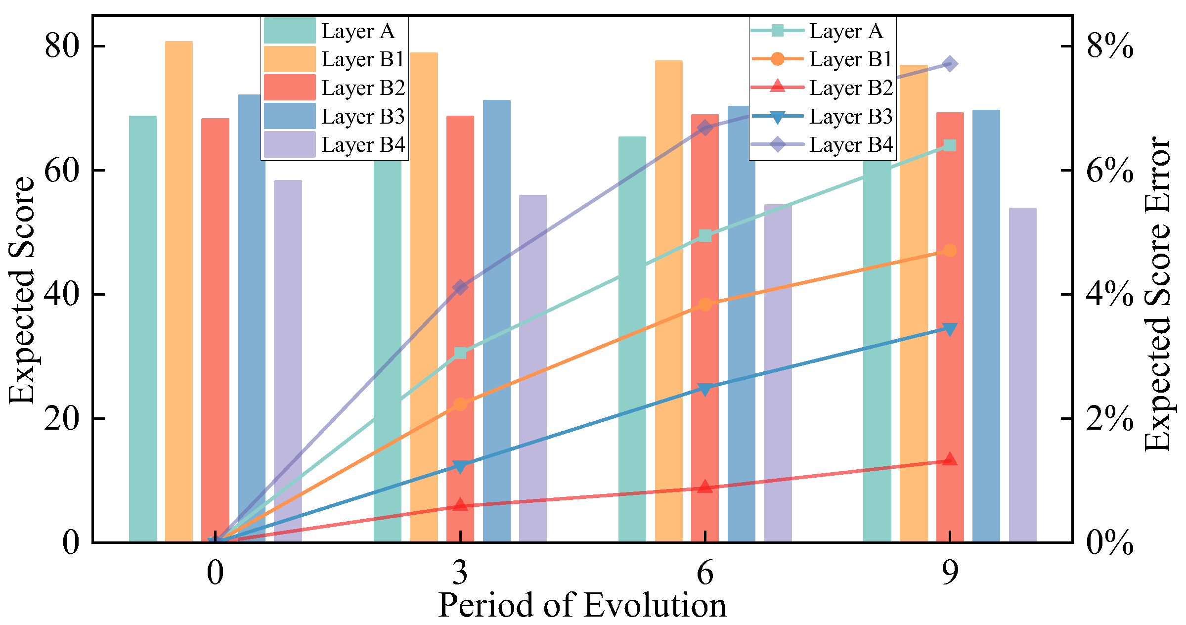 - The proposed method takes into account the asymmetric evolution of the power system over extended time spans. By dynamically modifying indicator weights through an evolutionary response function, compared to existing evaluation methods, the proposed method reduces the expected scoring deviations of secondary indicators by approximately 4.7%, 1.3%, 3.5%, and 7.7%, respectively, with an overall scoring deviation reduction of about 6.4%. This enables a dynamic and accurate evaluation of the capability of PSU to support the construction of NPS.