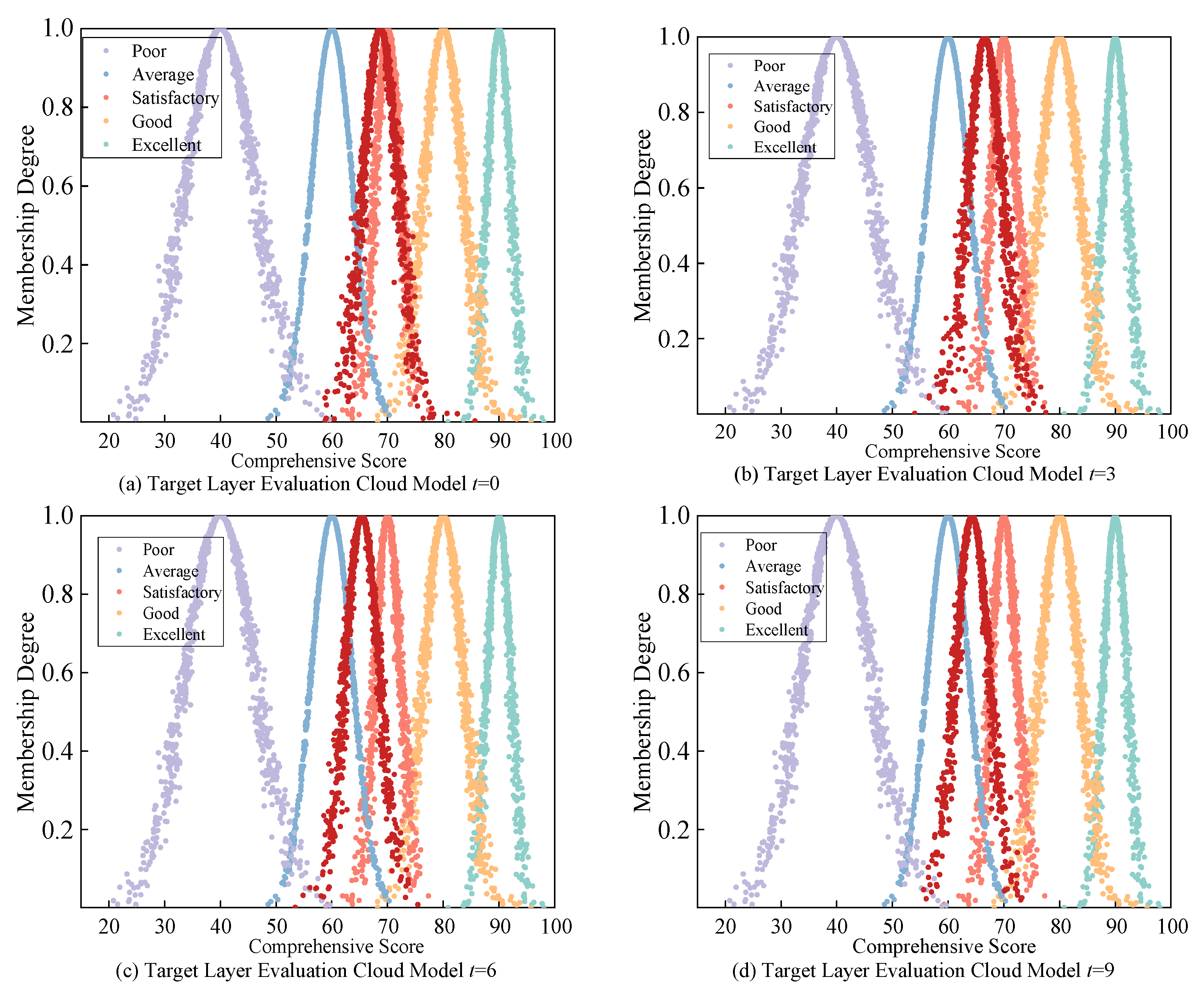 - The proposed method derives various indicators for PSU from relevant policy documents and balances conflicts between subjective and objective weights based on game theory, ensuring comprehensive indicator coverage and symmetrical, balanced weighting. By introducing a cloud model to characterize the uncertainty and asymmetry of evaluation results, the adaptability of the evaluation process and the interpretability of the results are enhanced.