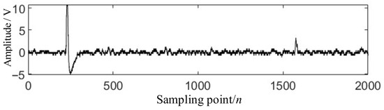 To verify the effectiveness and robustness of the method proposed in this article, this section first randomly selects any output projectile signal from the output signal dataset of the sky screen target for noise reduction processing. The original signal is shown in Figure 8. It can be seen that this signal contains various noises, including background noise, mosquito interference, and so on.