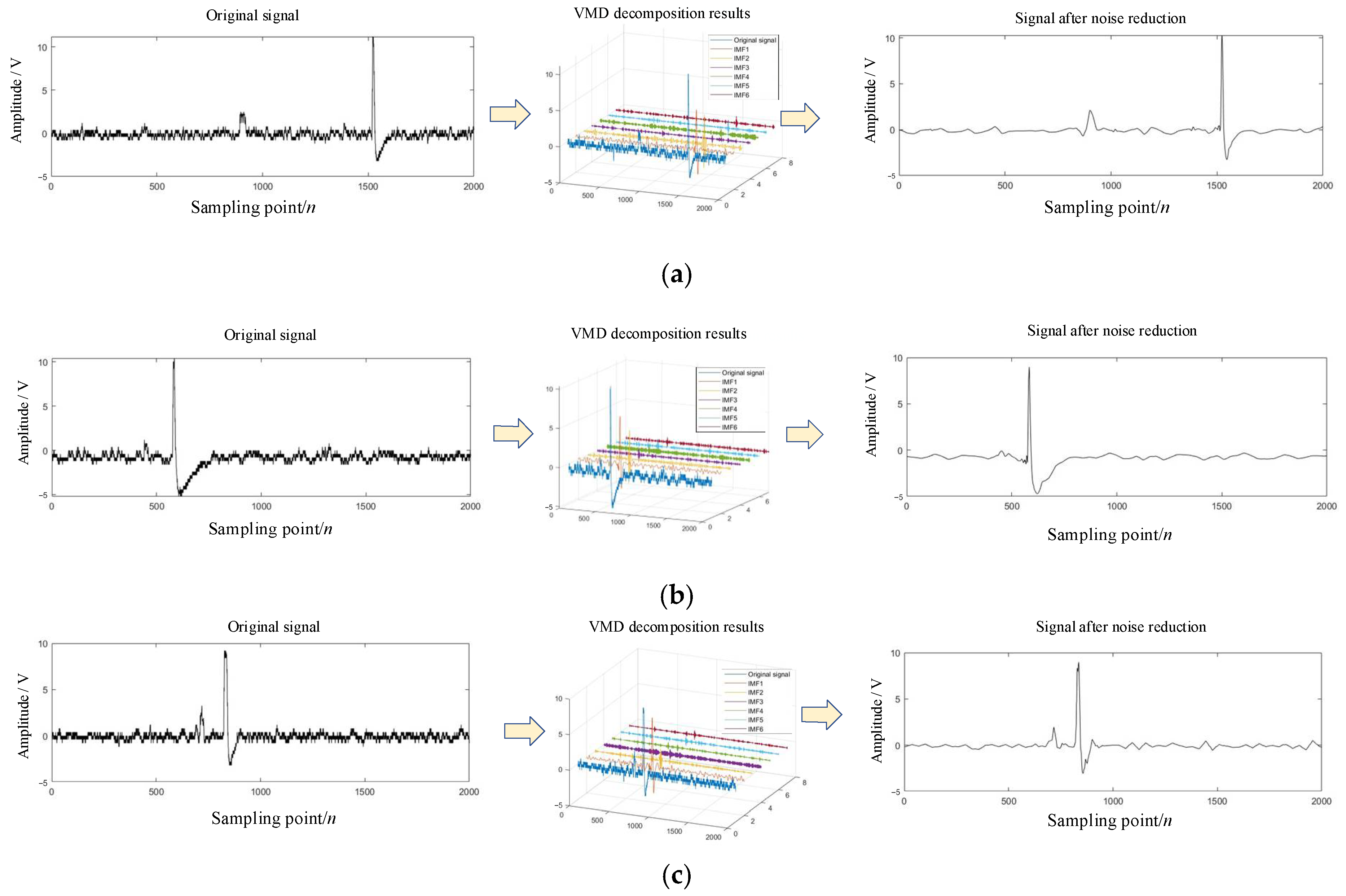 | VMD + Wavelet threshold | 0.124 | 2.78 | 18.73 | 18.85 | 0.137 | 2.70 | 17.65 | 19.54 | 0.142 | 2.62 | 19.75 | 20.14 |