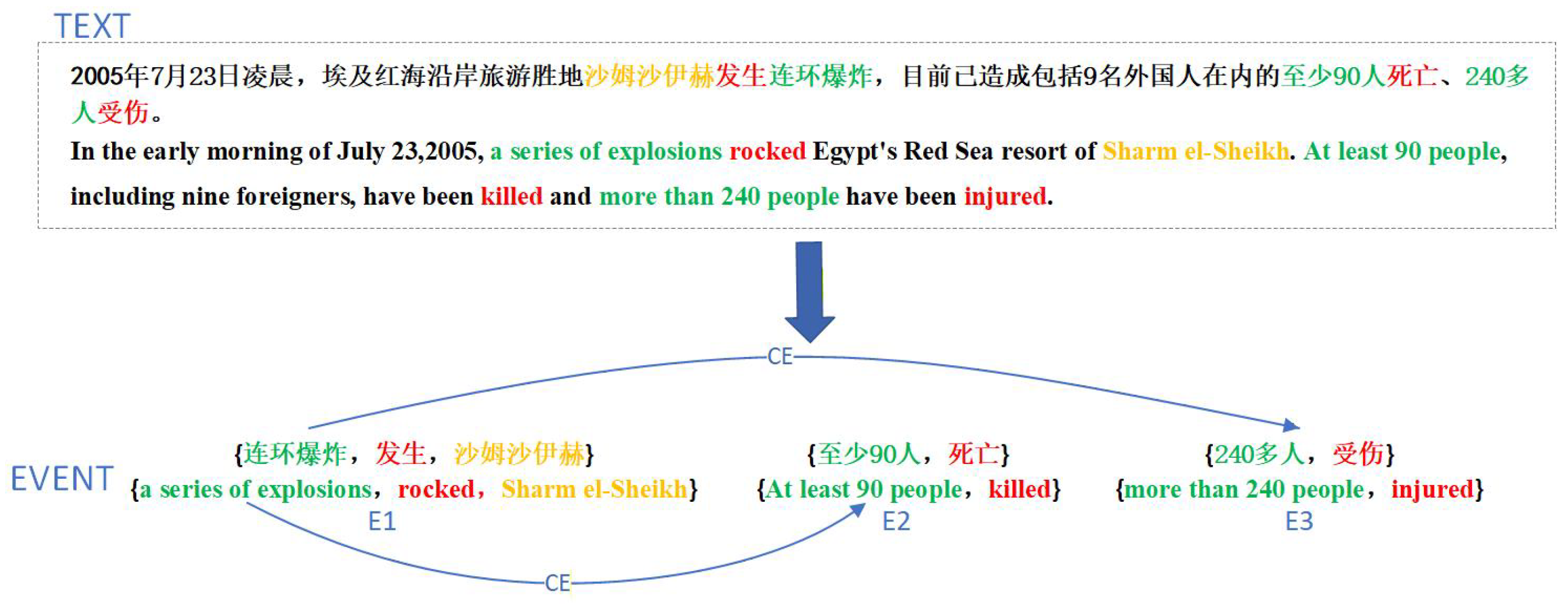 - Finally, a group of experiments was performed on the open CEC corpus. The experimental results show that the proposed CERMiner achieves significant improvement in the joint extraction of multiple Chinese emergency event–event relations over existing state-of-the-art models under low-resource conditions.