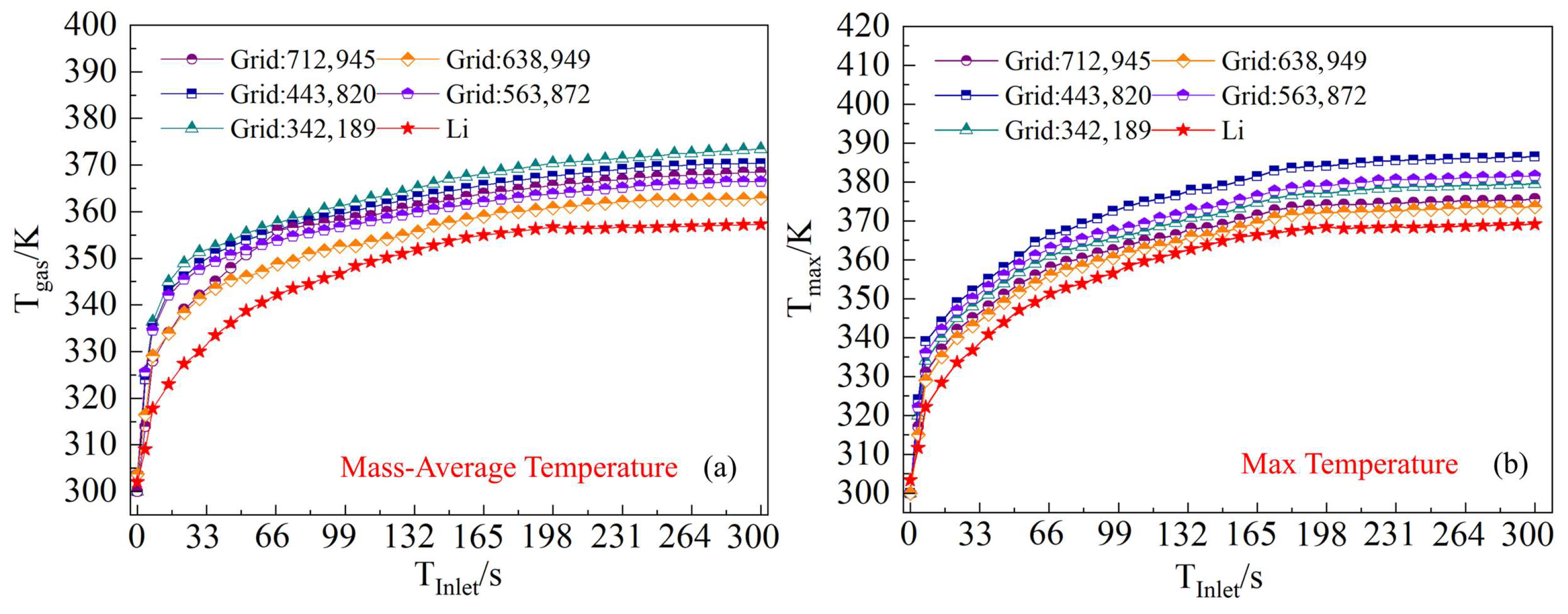 - Li, M.X.; Yang, Q.; Zhang, C.Z.; Huang, S.; Zhang, M.J.; Zhang, G.; Zhao, L.; Jiang, S. Experimental and numerical study of the temperature evolution in hydrogen cylinder under fast-refueling process. Int. J. Heat Mass Transf. 2023, 211, 124220. [Google Scholar] [CrossRef]