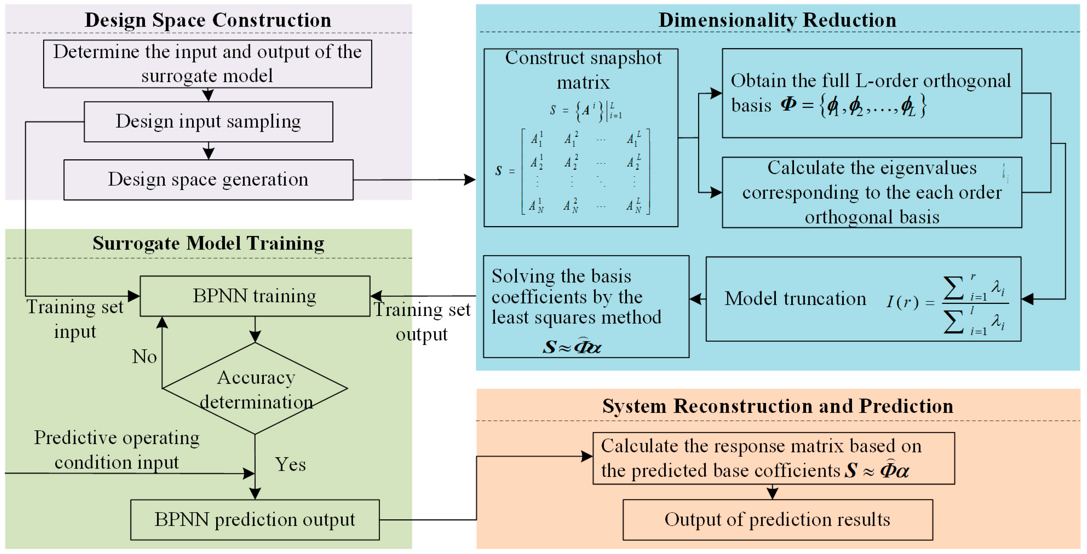 To address real-time computational requirements, the Proper Orthogonal Decomposition (POD) method has emerged as an effective solution. This technique processes simulation data to establish quasi-ordered structures, subsequently constructing orthogonal basis functions that capture system-dominant characteristics. Through linear superposition of these bases, physical field reconstruction under arbitrary design parameters becomes achievable, significantly reducing computational demands [