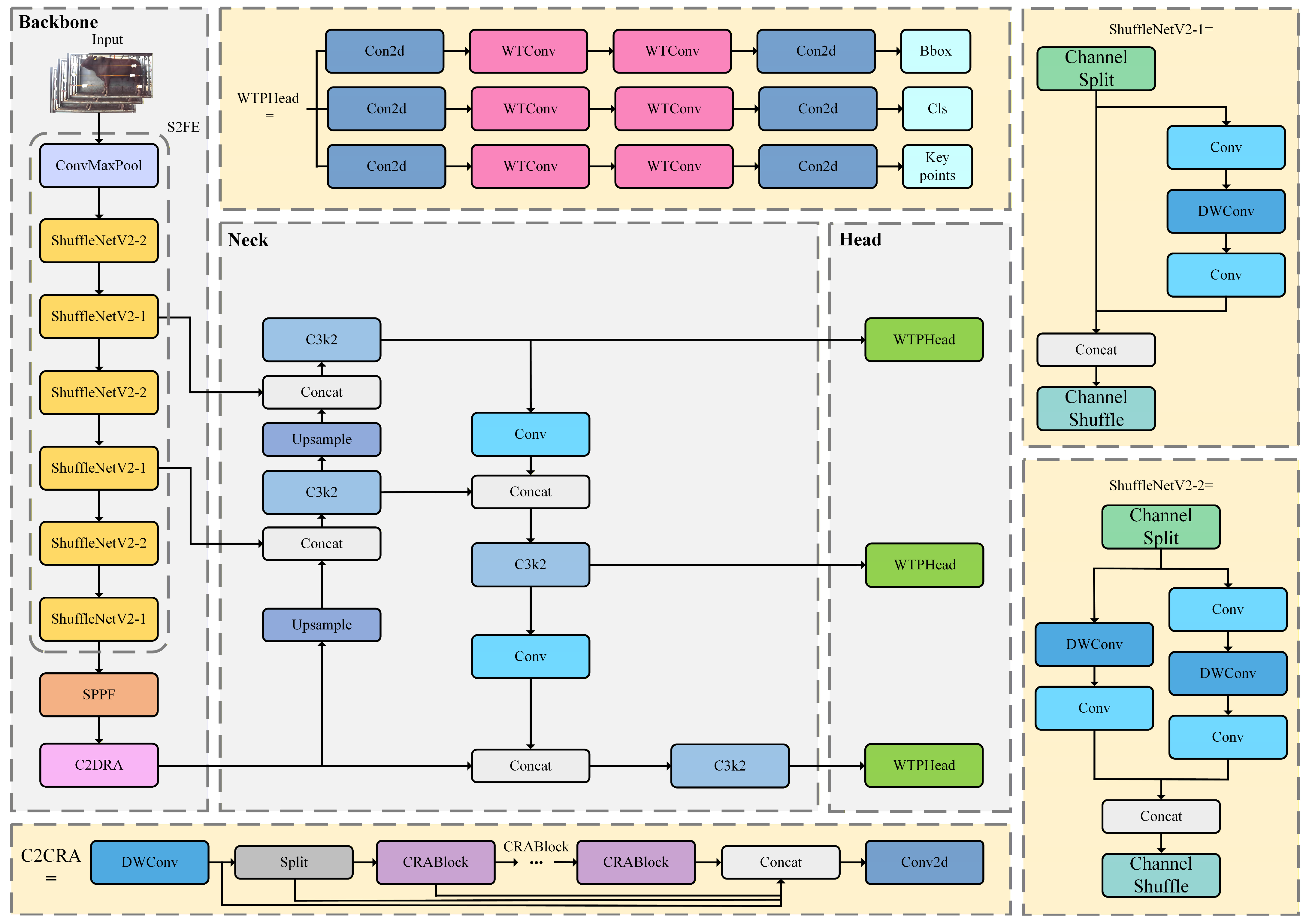 34], the most lightweight pose estimation model in the YOLOv11 series. Nevertheless, due to its multi-task nature (object and keypoint detection) and multi-layer convolutional operations, YOLOv11n-pose still faces challenges such as a large number of parameters, high computational complexity, and considerable model size. Building on YOLOv11n-pose, this study proposes S2FE C2DRA WTPHead-YOLO (SCW-YOLO), a novel lightweight cattle body keypoint detection model with the following enhancements: