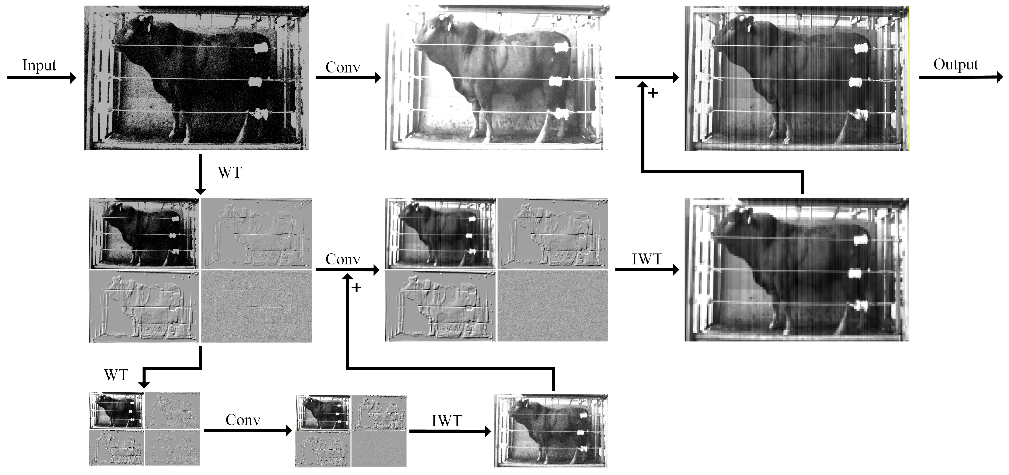 (1) A novel feature extraction module, ShuffleNet V2 Feature Extraction (S2FE), was designed to efficiently extract cattle keypoint features while reducing the number of model parameters and compute cost, thus decreasing the overall model size. (2) A new attention mechanism, Cross-Stage Partial with Depthwise Convolution and Channel Reduction Attention (C2DRA), was introduced to enhance global information extraction capability for cattle while simultaneously reducing computational overhead. (3) A novel keypoint detection head, Wavelet Convolution Pose Head (WTPHead), was designed to effectively expand the receptive field and further improve the lightweight nature of the model.