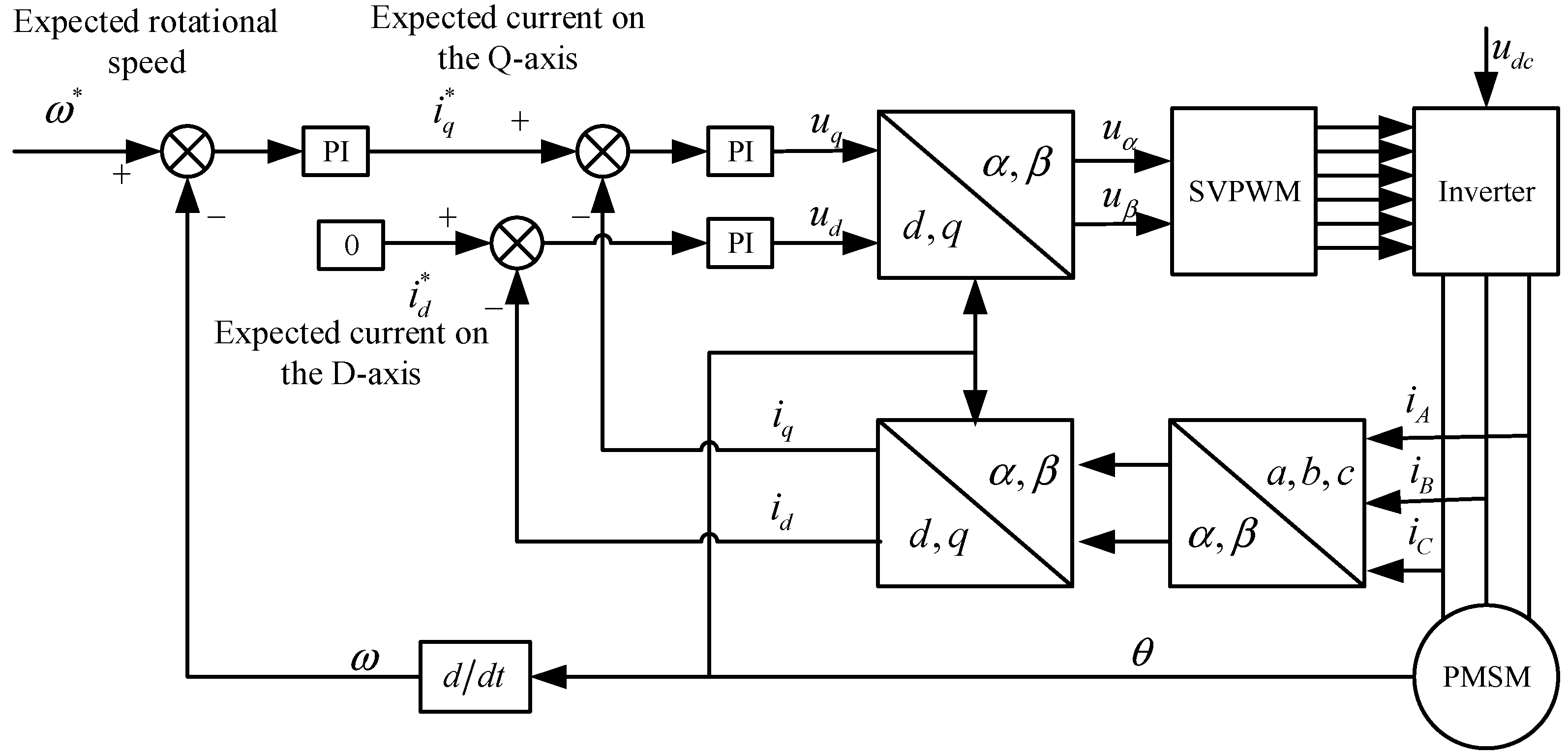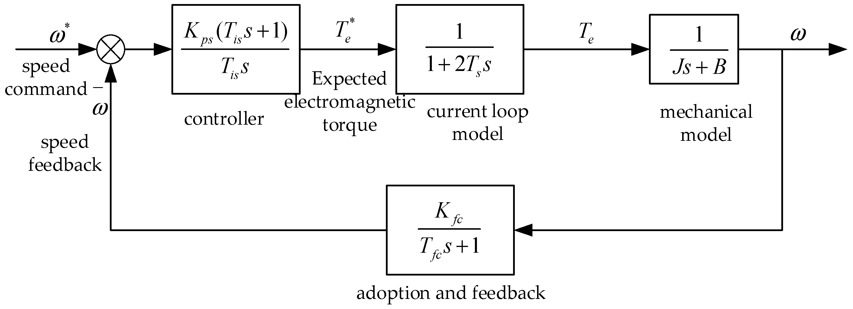 In the equation, denotes the electromagnetic torque, J denotes the moment of inertia of the servo system, B denotes the viscous friction coefficient, denotes the rotor mechanical angular velocity, and denotes the load torque.