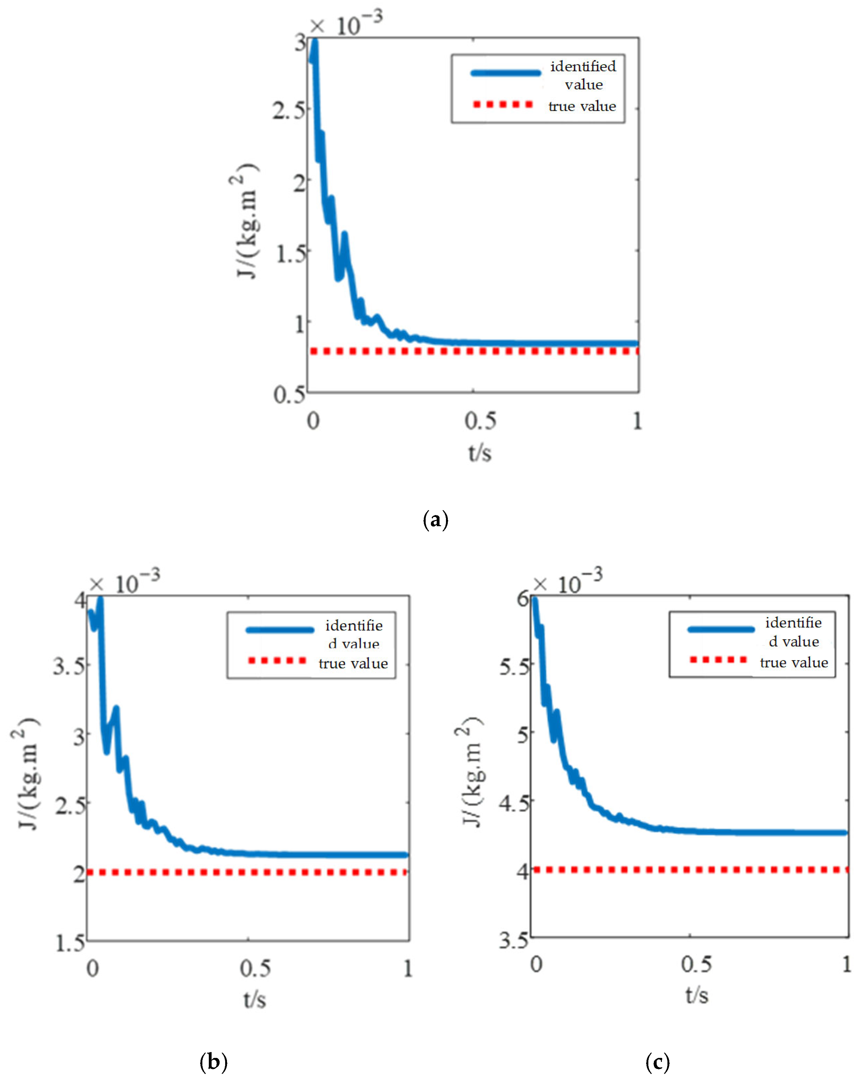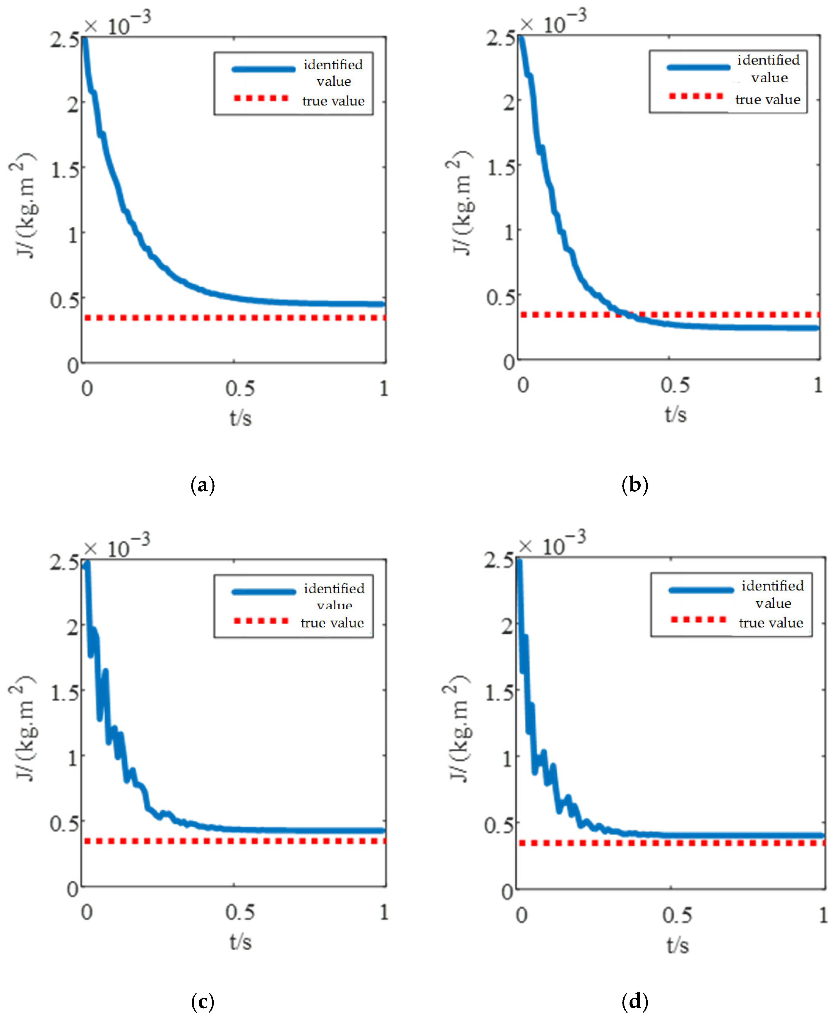 Based on the above experimental results, in order to intuitively present the identification accuracy and convergence time of the identification algorithm, the identification results under different inertia conditions are shown in