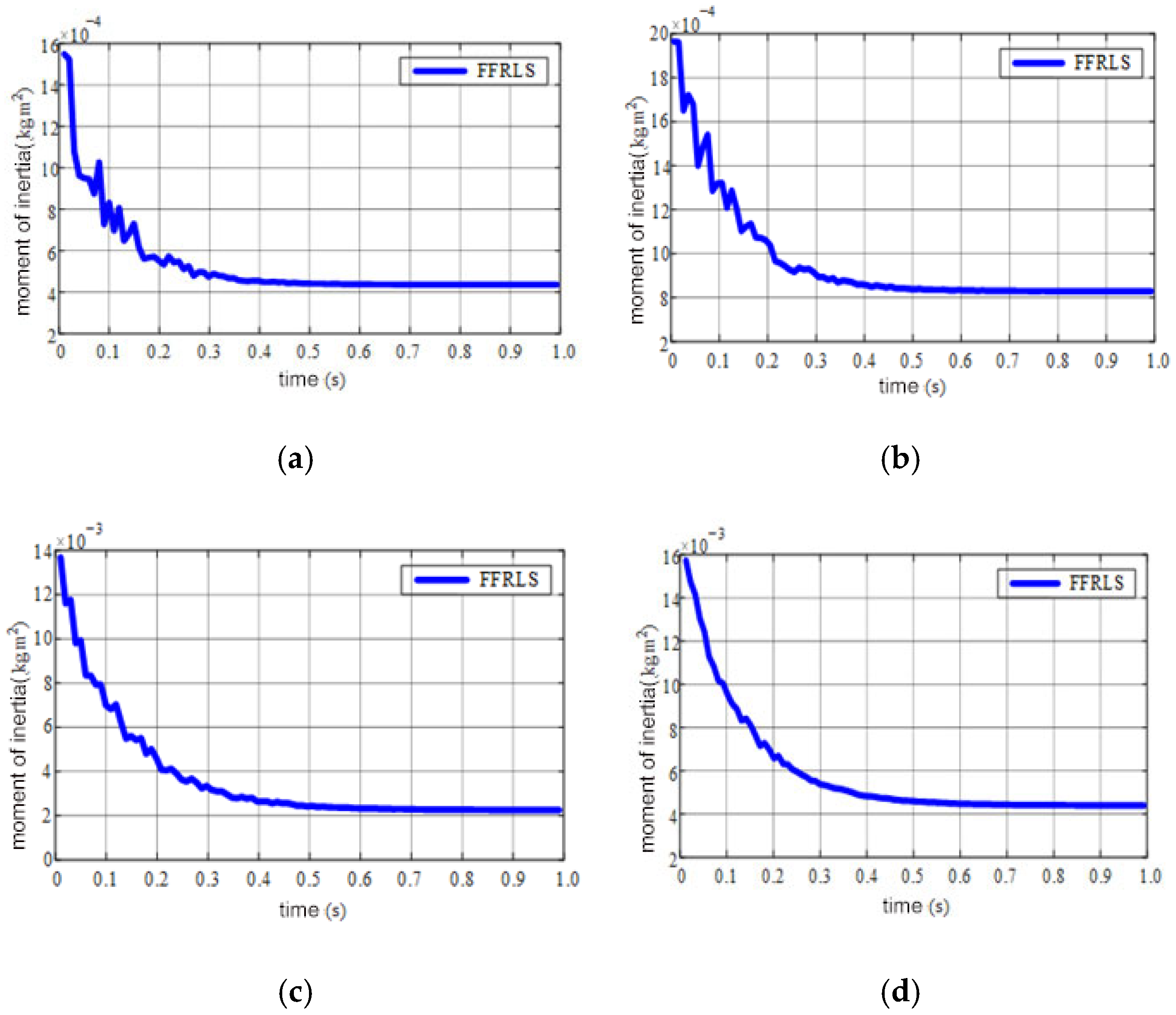In conclusion, the FFRLS algorithm proposed in this paper meets the requirements of practical engineering applications in terms of both identification accuracy and convergence time for moment of inertia identification. It is conducive to quickly obtaining accurate system parameter estimation in real-time or rapidly dynamically changing system environments, thereby helping to improve the flexibility and reliability of the overall system control strategy.
