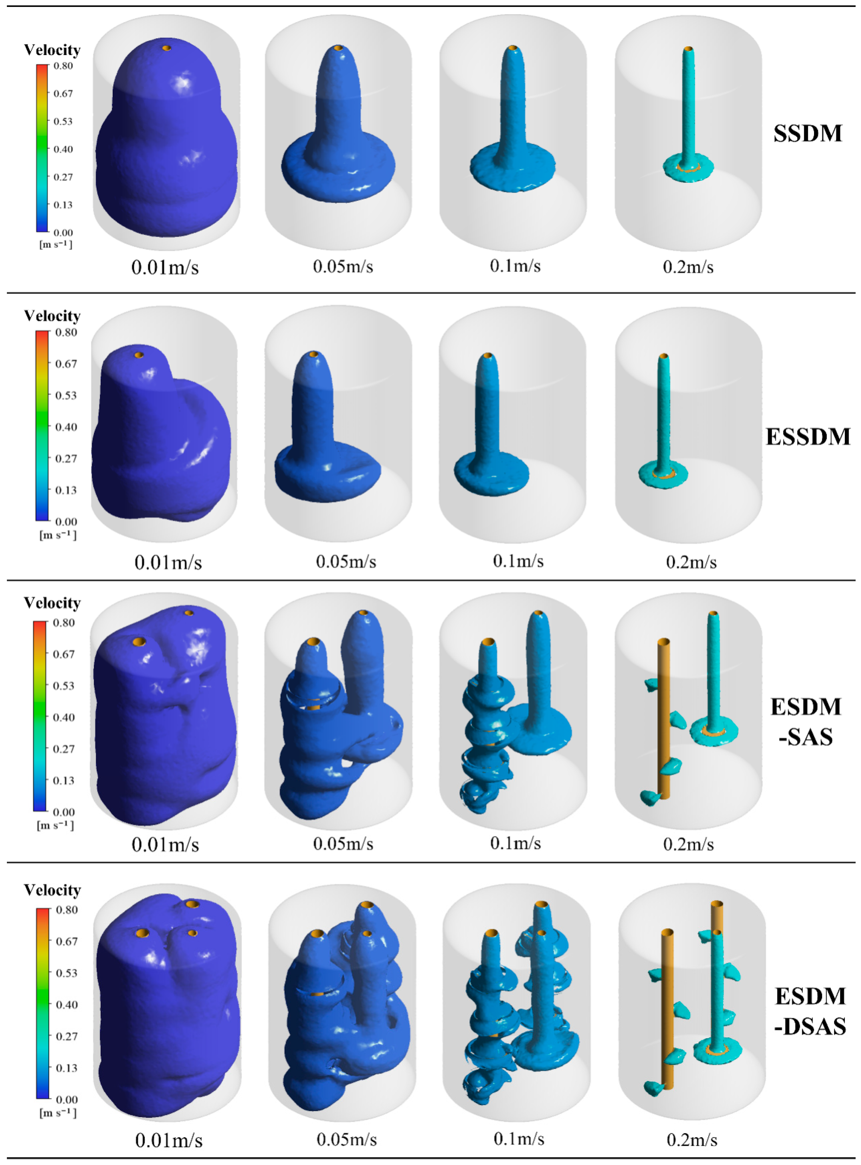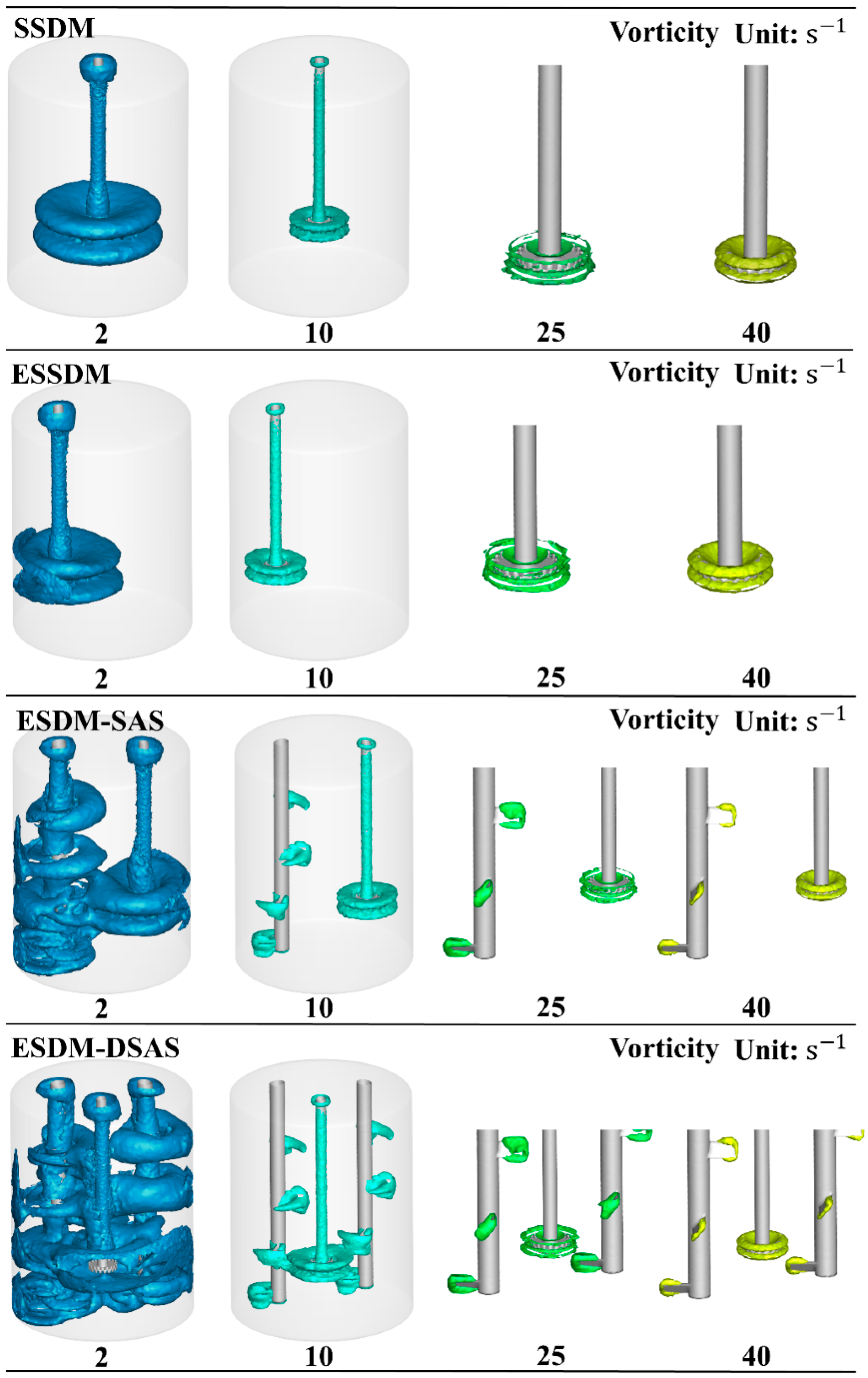 | Impeller Speed (r/min) | SSDM | ESSDM | ESDM-SAS | ESDM-DSAS |