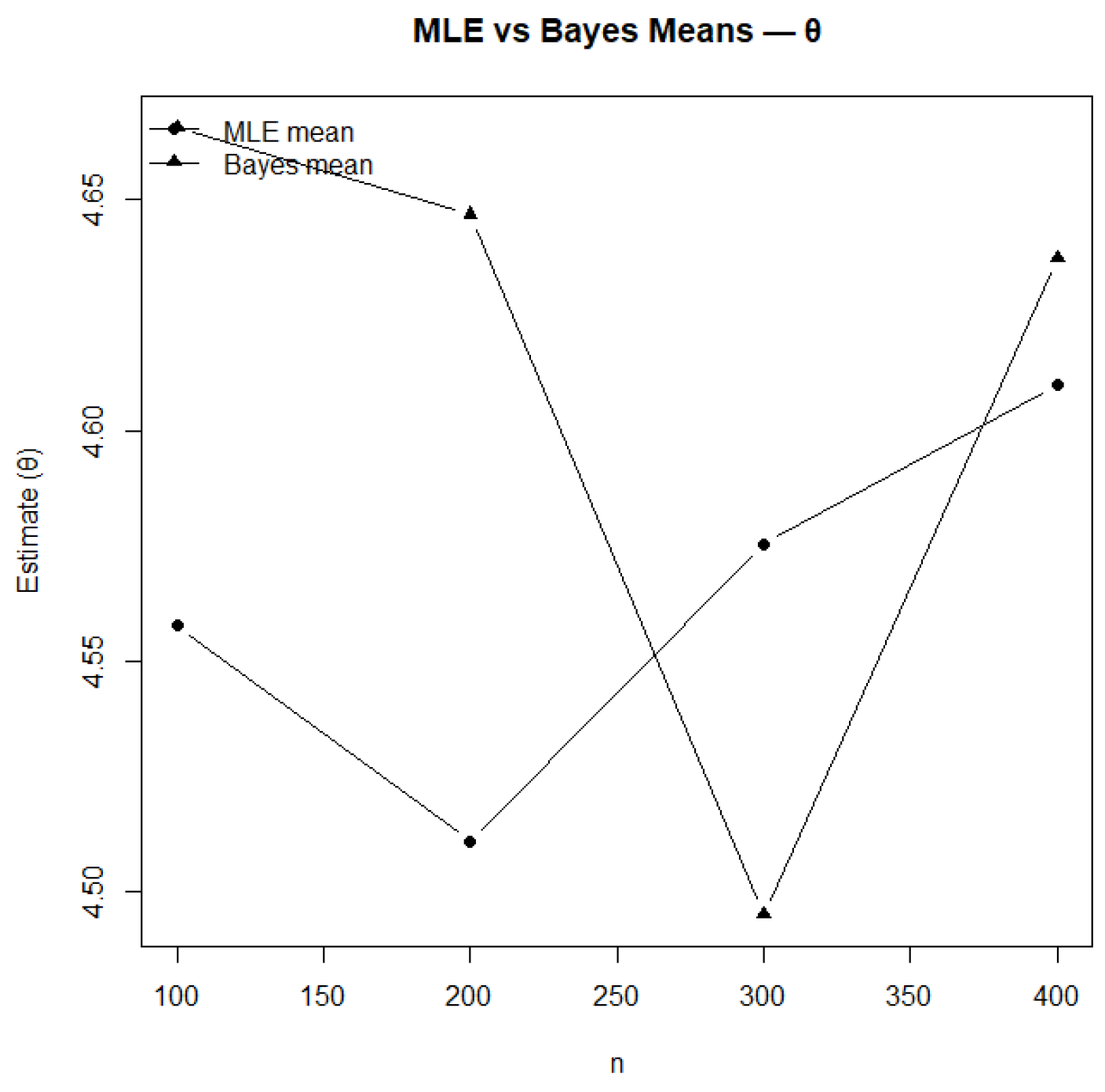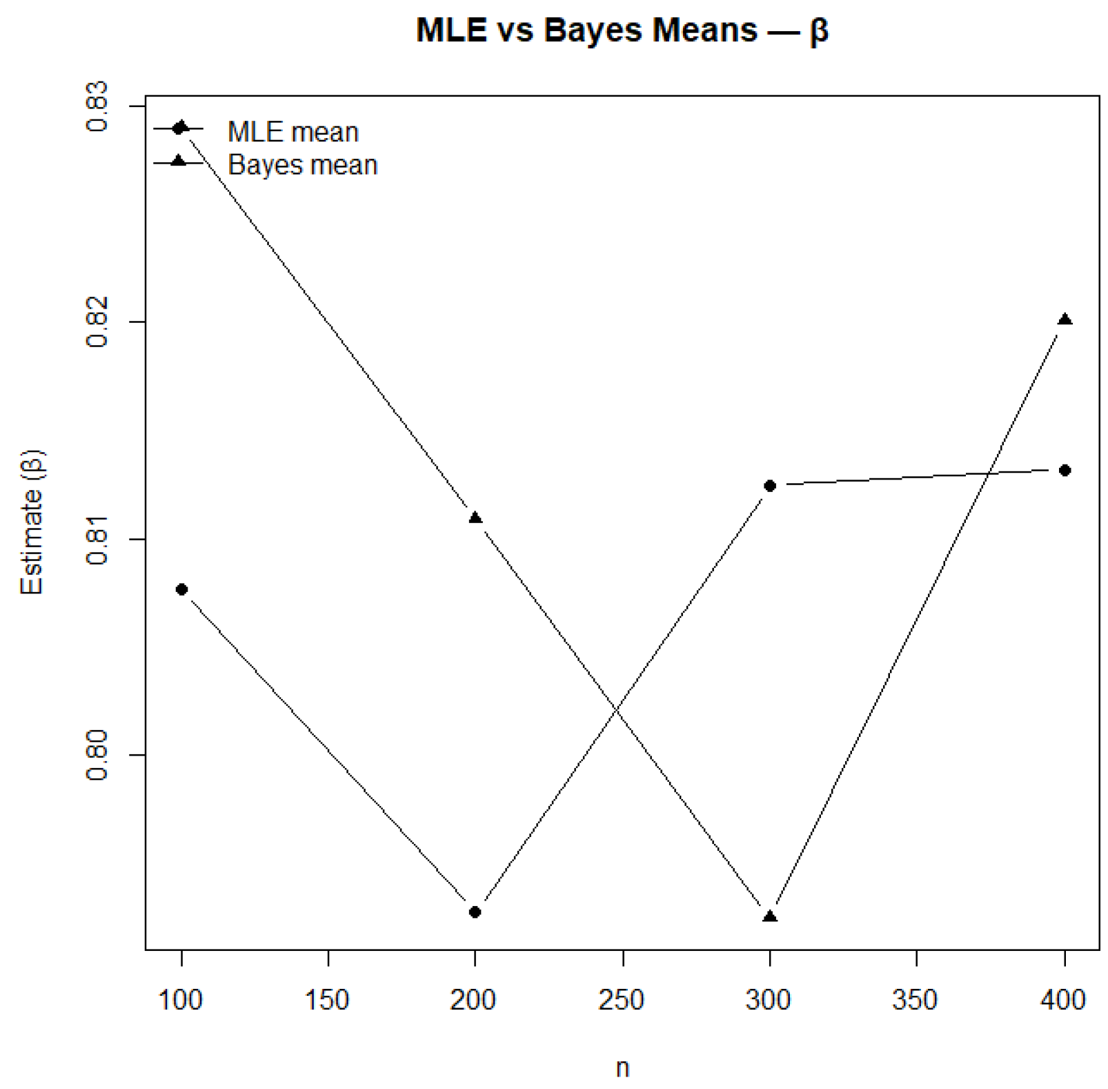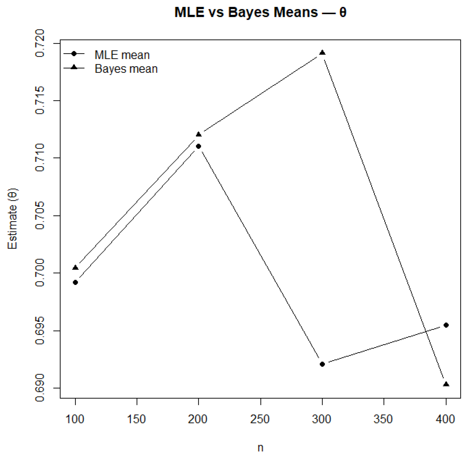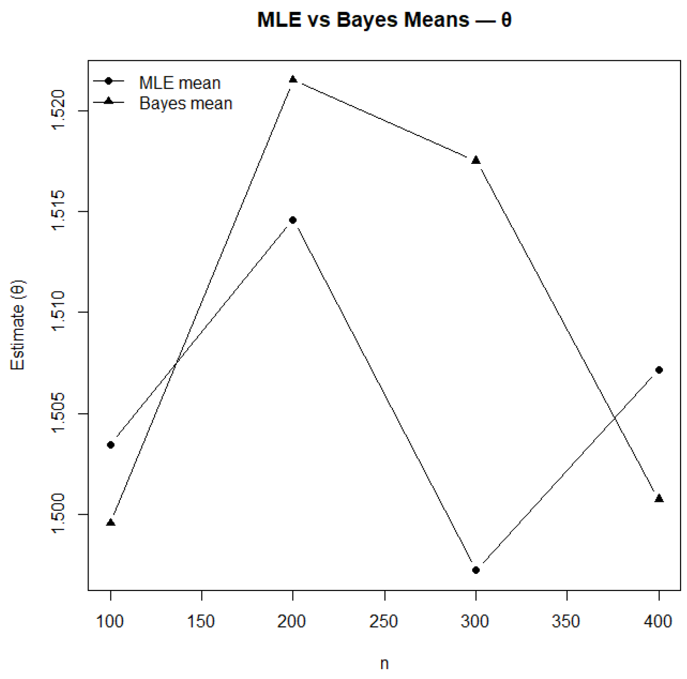Comparison of mean estimates from MLE and Bayesian inference for .