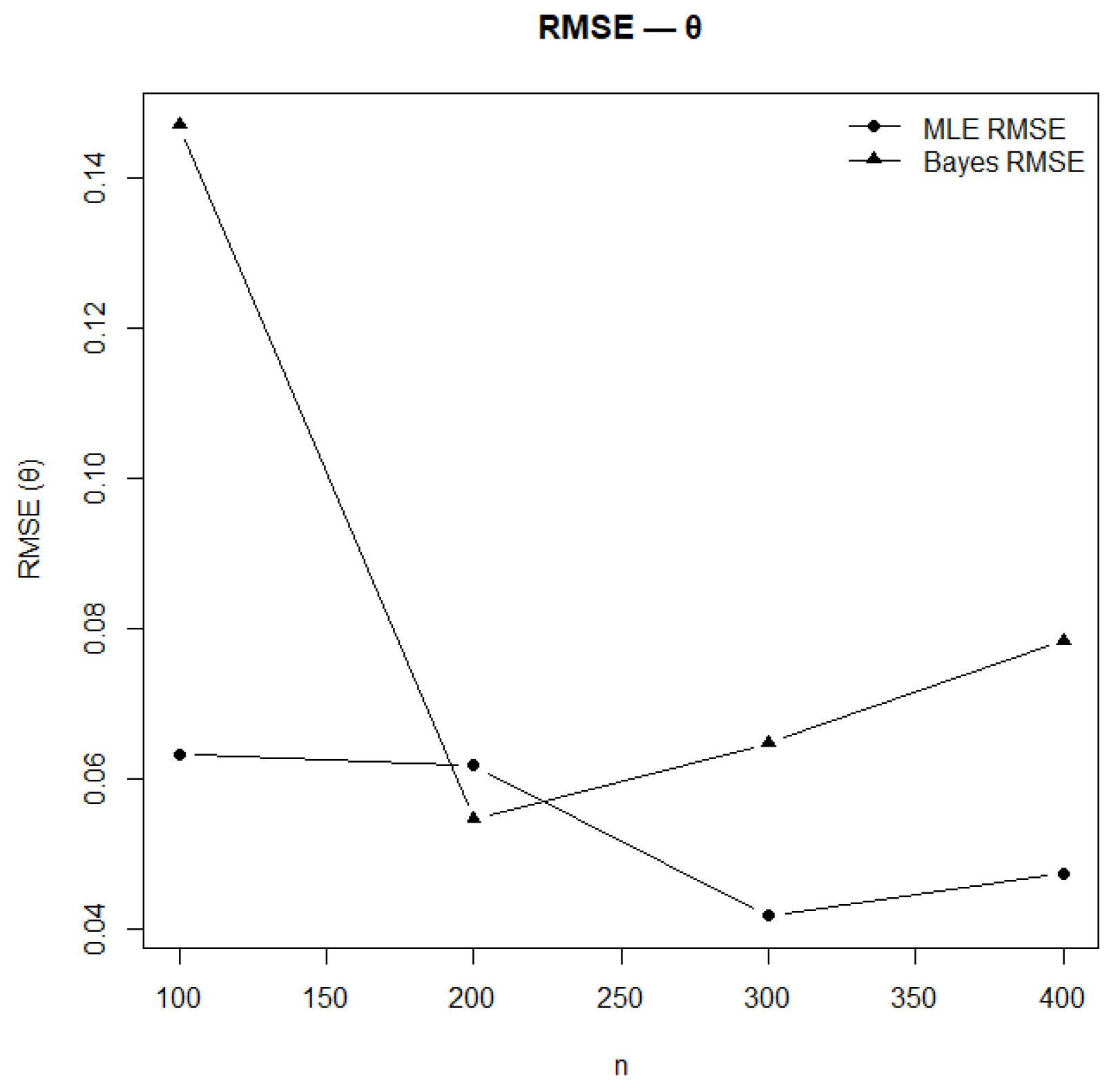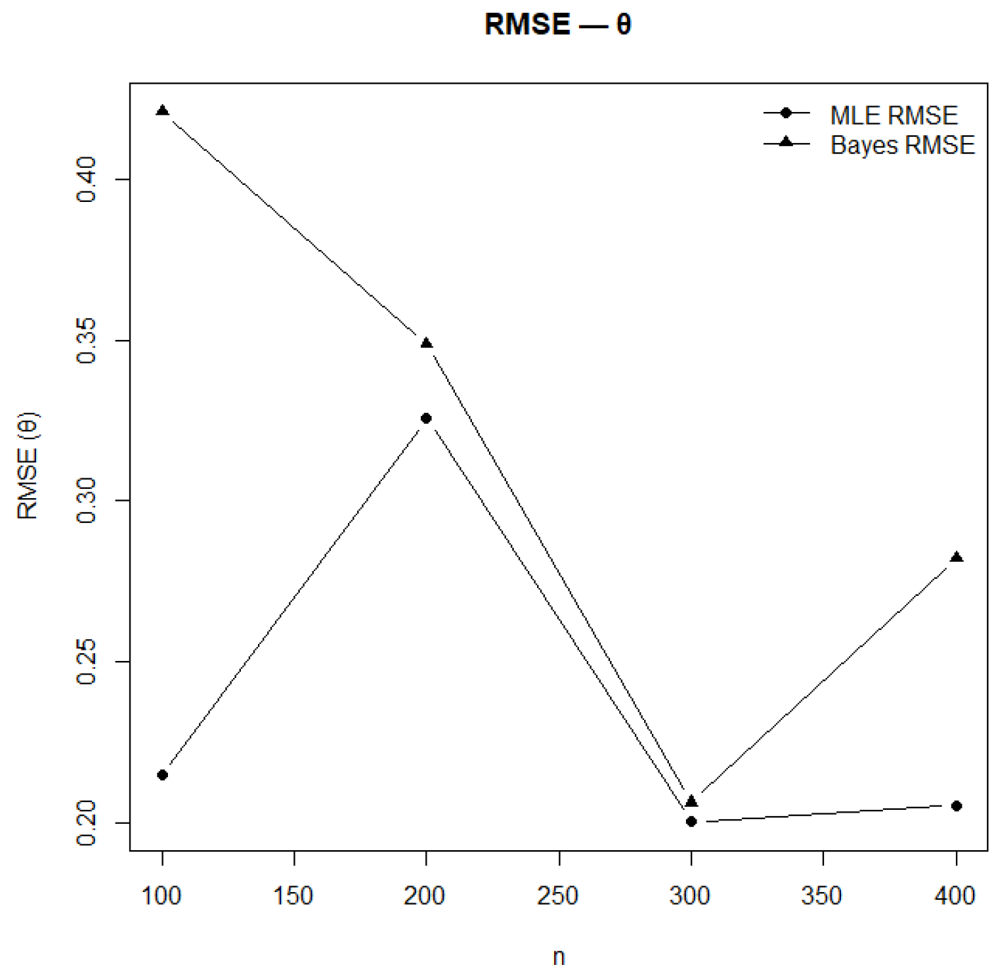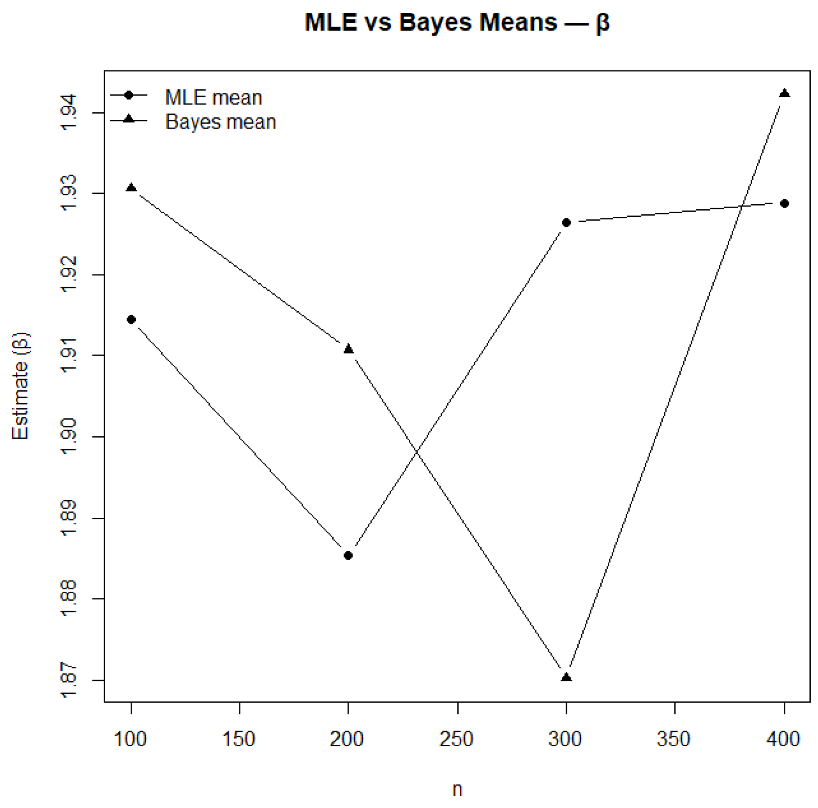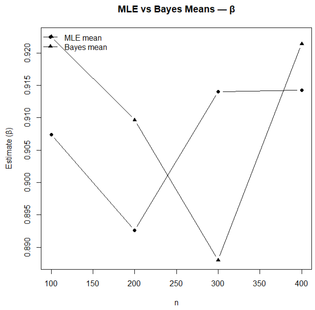 Comparison of mean estimates from MLE and Bayesian inference for .