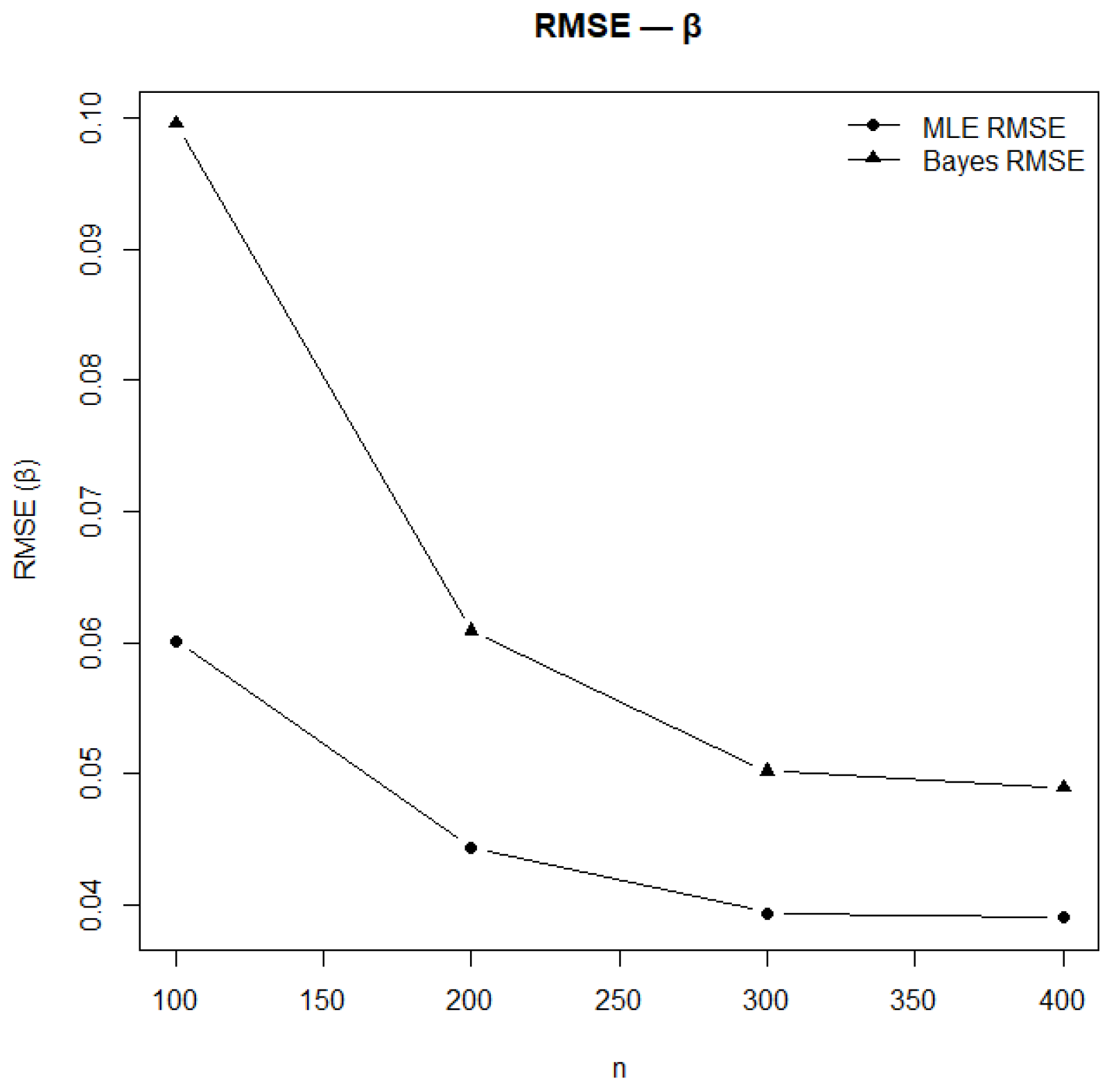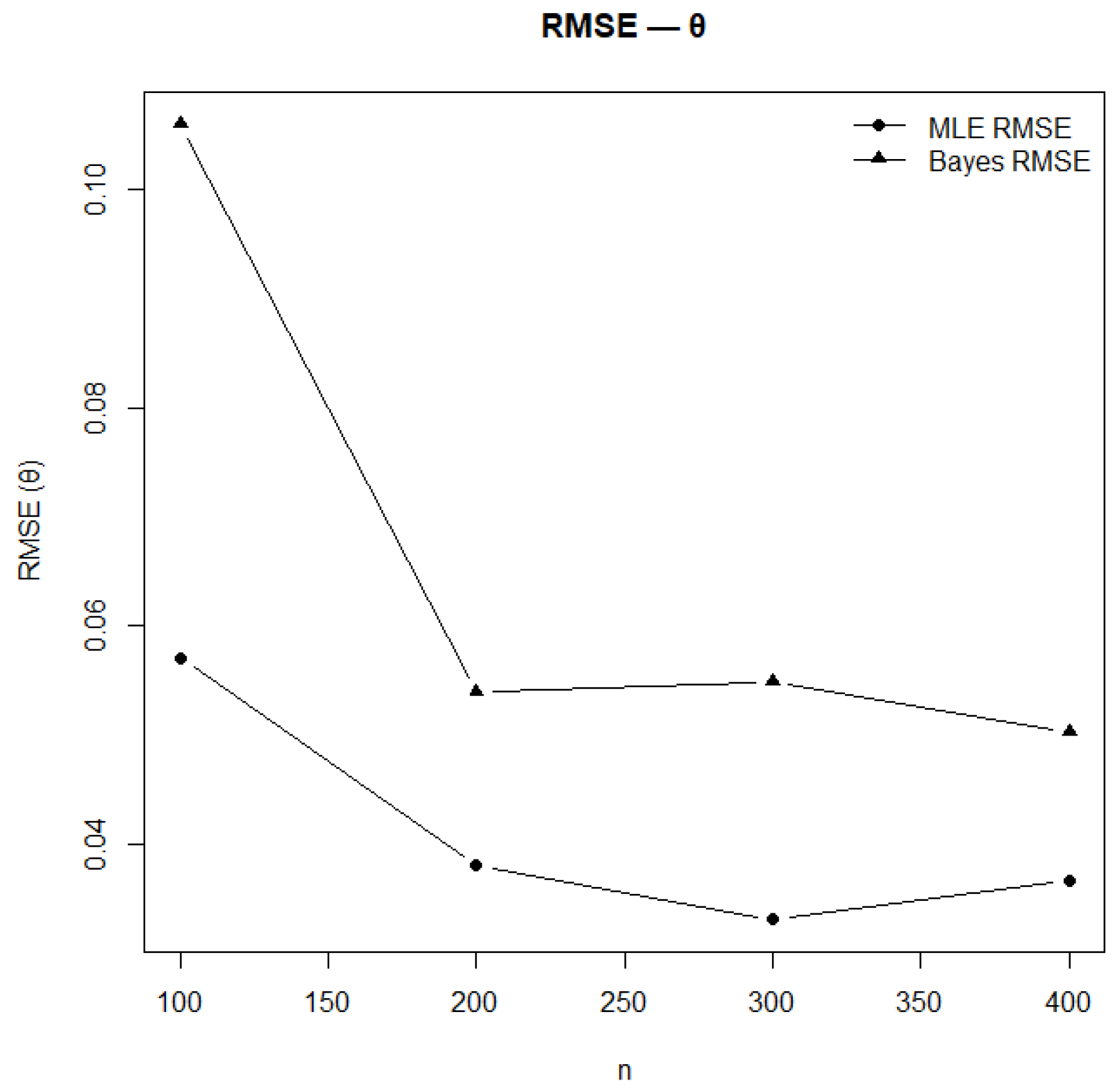 Comparison of mean estimates between MLE and Bayesian inference for .
