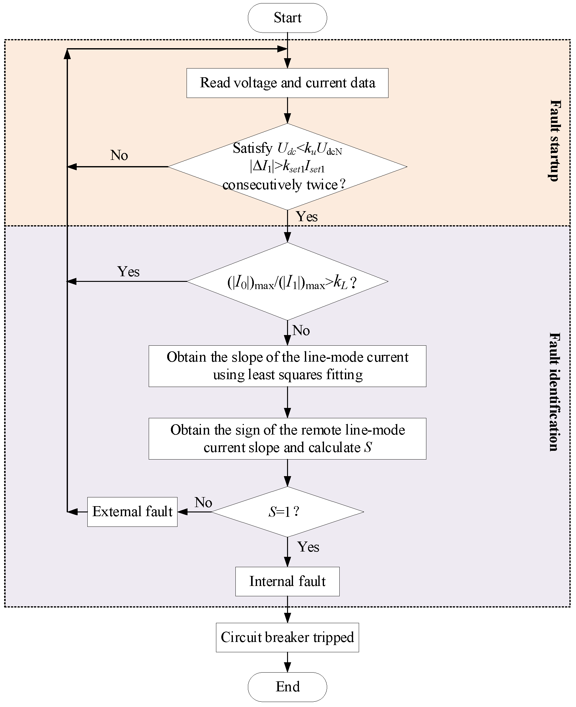 Analysis of transient fault behavior confirms that pole-to-pole faults induce a swift rise in line-mode current and an abrupt decrease in voltage. These measurable responses form the basis of the following startup criterion.