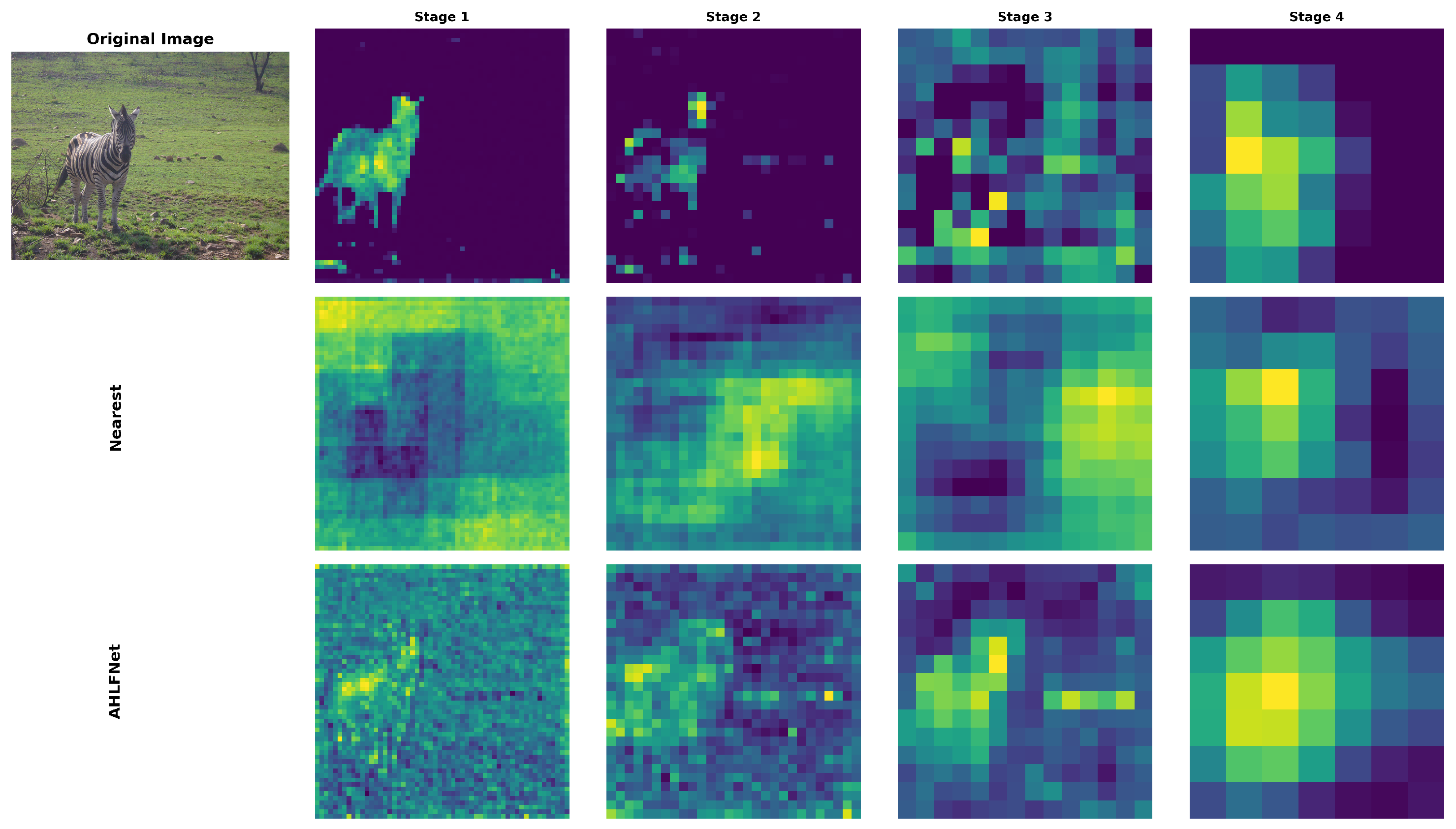 - Under this paradigm, we instantiate the AHLFNet which integrates three key components: (1) an Adaptive Low-frequency Unit (ALFU), which smooths object interiors to suppress high-frequency interference and reduce intra-class conflict; (2) a Gate-Controlled Selector (GCS), which adaptively determines the kernel size for smoothing through similarity analysis to ensure feature consistency; and (3) an Adaptive High-frequency Unit (AHFU), which compensates for boundary details lost during downsampling to improve edge localization accuracy.