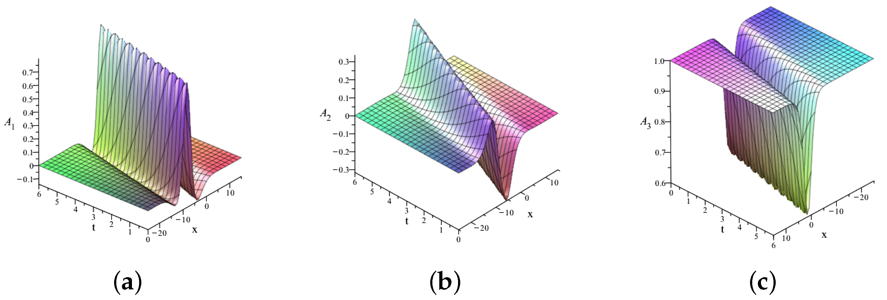 Thus, the two-fold DT provides an effective mechanism for iteratively generating higher-order solutions of the original nonlinear system, enabling the construction of multi-soliton configurations and their interactions.