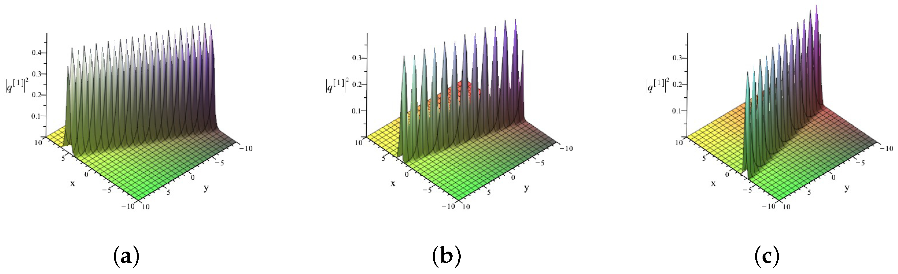 3.4. One-Soliton Solution of the (2+1)-Dimensional FL Equation