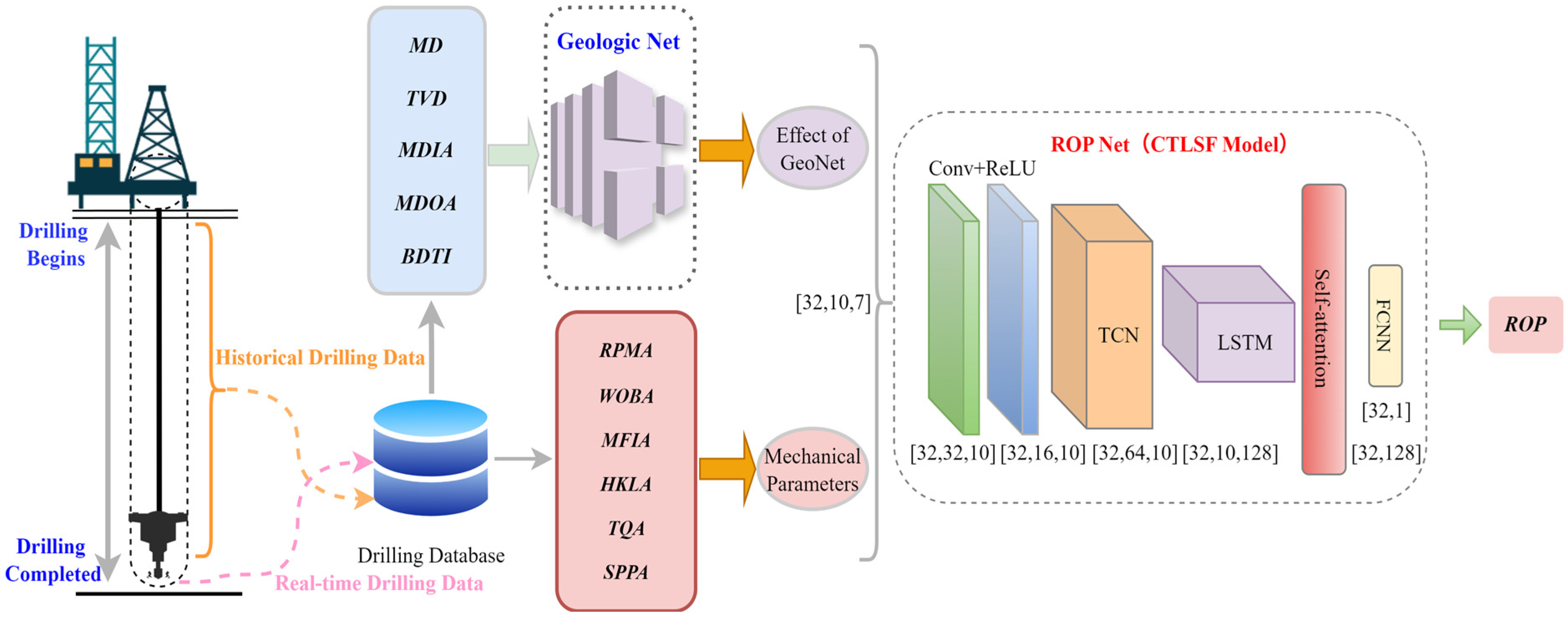 Compared with traditional single-network models, CTLSF demonstrates superior feature fusion capabilities in processing time series data and excels at capturing long-term dependencies, significantly enhancing the accuracy and robustness of oilfield mechanical drilling rate prediction. Therefore, the proposed CTLSF model offers a novel approach for time series forecasting tasks and holds great potential for a wide range of applications.