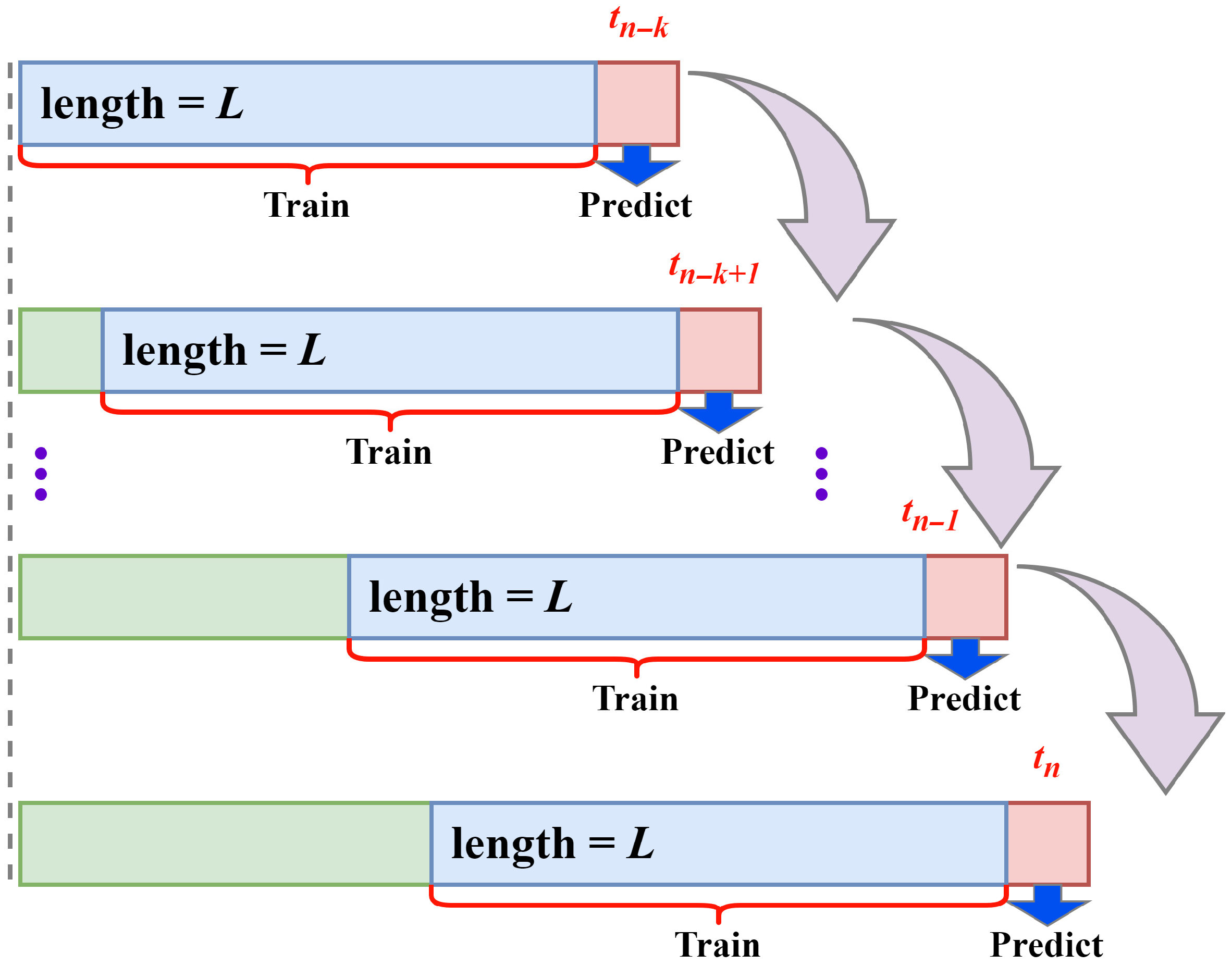 Figure 9, a sliding window of length L is applied to process the data sequence. As new samples arrive, the sliding window moves forward along the sequence. At each window update, the model is trained multiple times using the data within the window, thereby predicting the next ROP value. In this study, different window sizes were set and experiments were conducted to analyze the impact of window size on model performance. As shown in