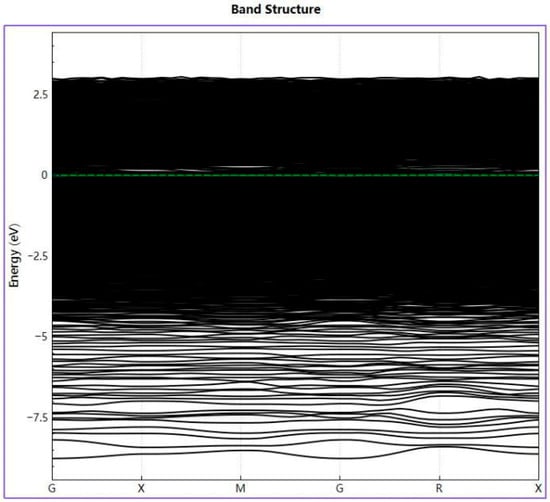 Figure 10 shows the energy band structure of AlCrFeMoTi HEA along with the highly symmetric direction of the Brillouin region. The green dotted line in the figure represents the position of the Fermi energy level. The energy band structure near the Fermi level is closely related to material properties. As shown in the figure, due to the overlap between the conduction band and valence band, the energy gap is zero, indicating that AlCrFeMoTi HEA exhibits metallic properties. At the same time, the image shows that the energy band of the AlCrFeMoTi HEA is compact, which may be due to the strong interaction of orbital electrons between atoms.