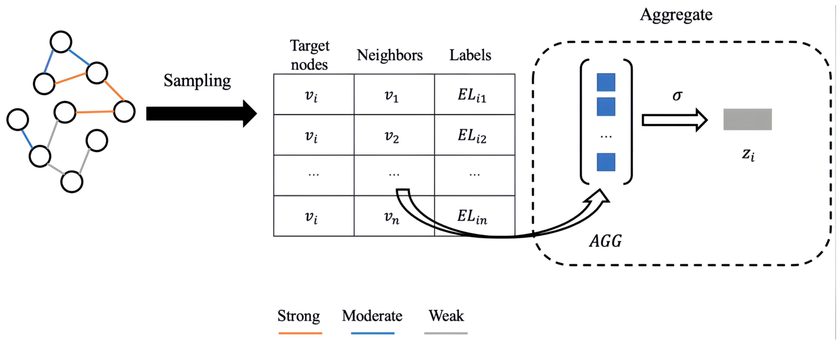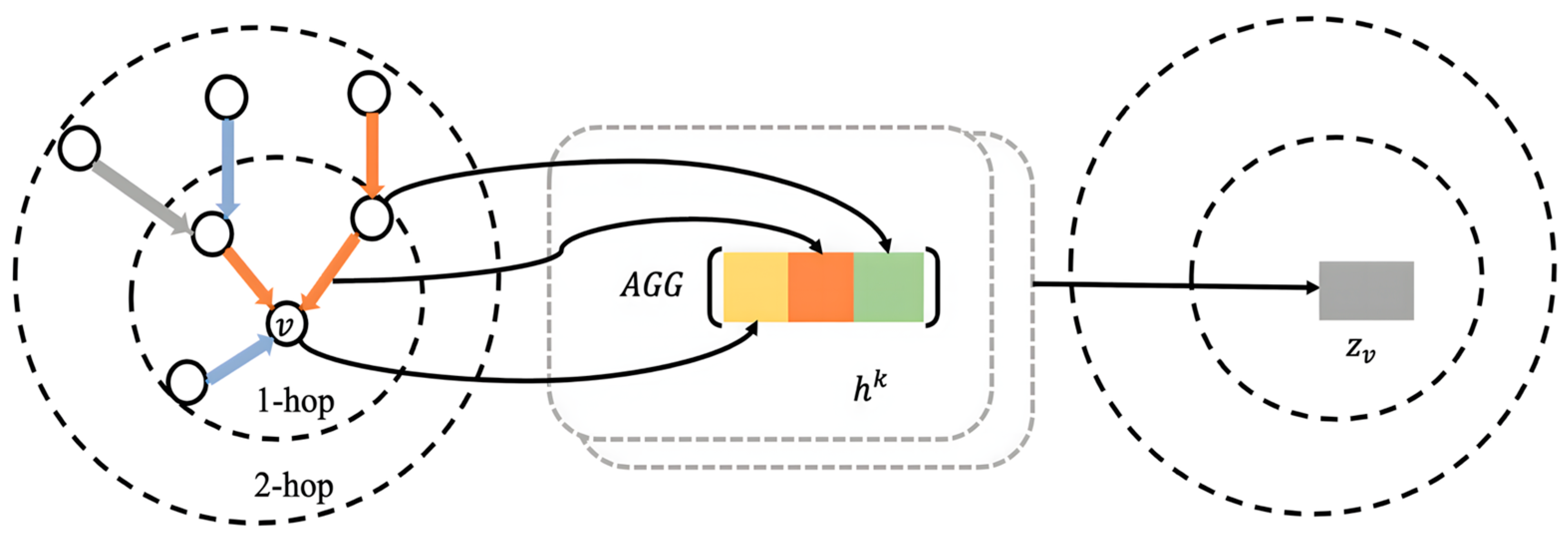| Input: node set ; node features ; neighborhood for node ; aggregation depth ; aggregation function ; weight matrix ; activation function ; Output: embedding vector ; 1: 2: for . do 3: for do 4: ; 5: ; 6: ; 7: end for 8: ; 9: end for 10: ; |