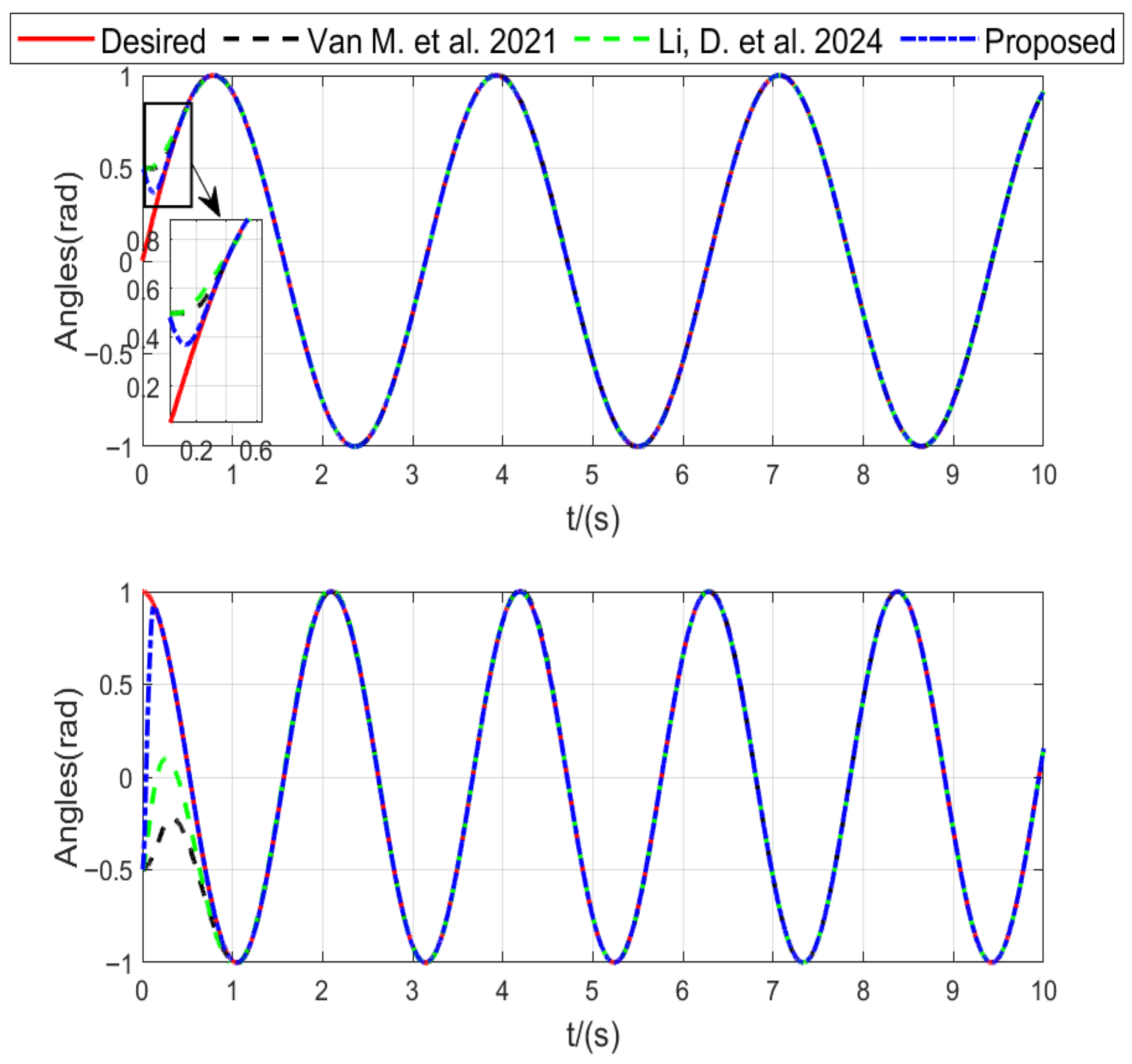 Figure 2. Tracking performance of manipulators with Refs. [30,32].