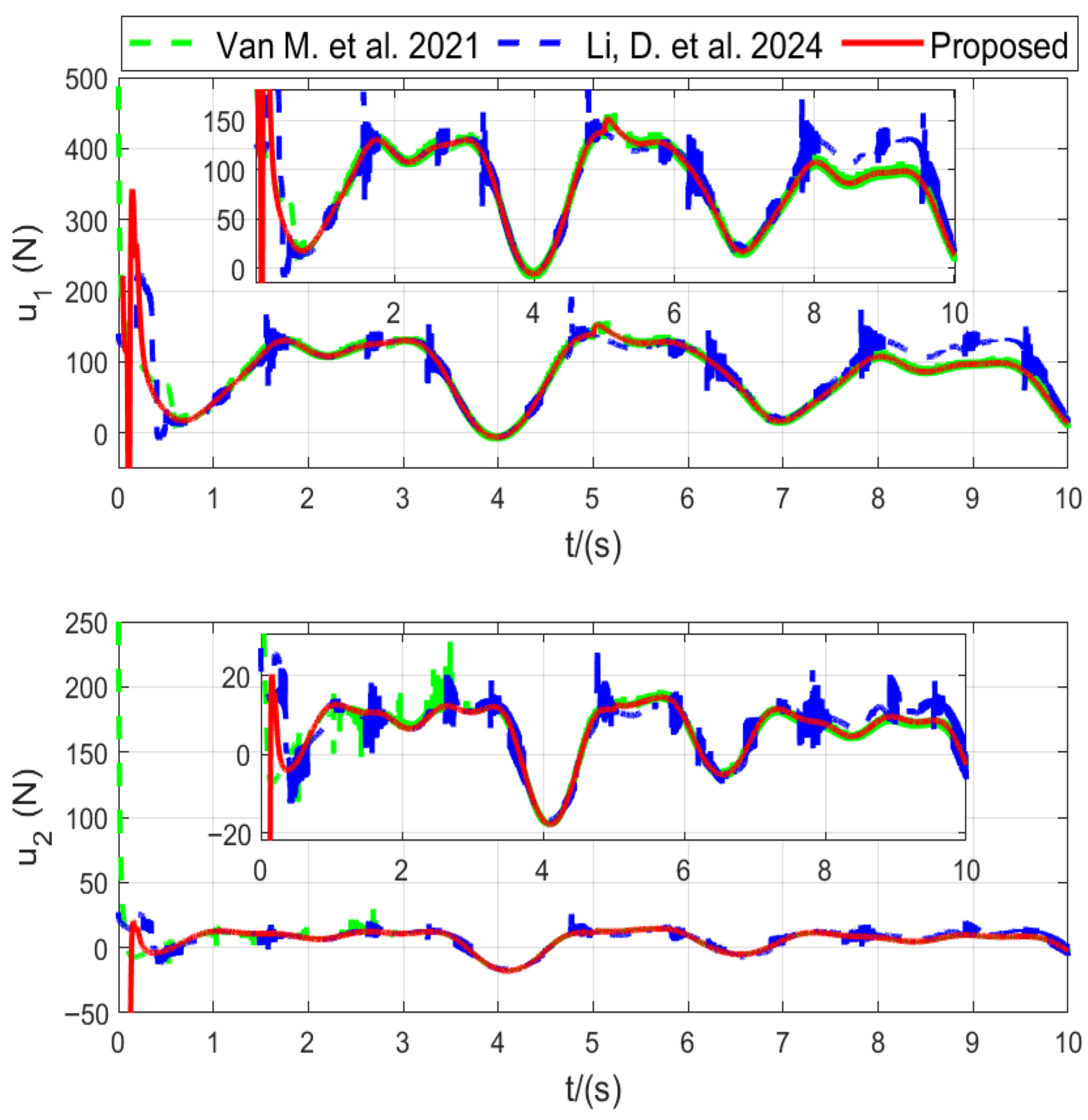 Figure 4. Control input with Refs. [30,32].